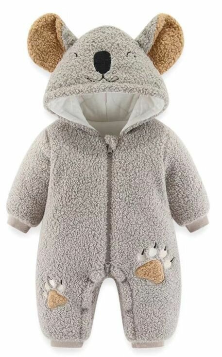 СохранитьКомбинезон утепленный для новорожденного, плюшевый для малышей, демисезонный, с мордочкой - серый - размер 90 (E3) интересное: