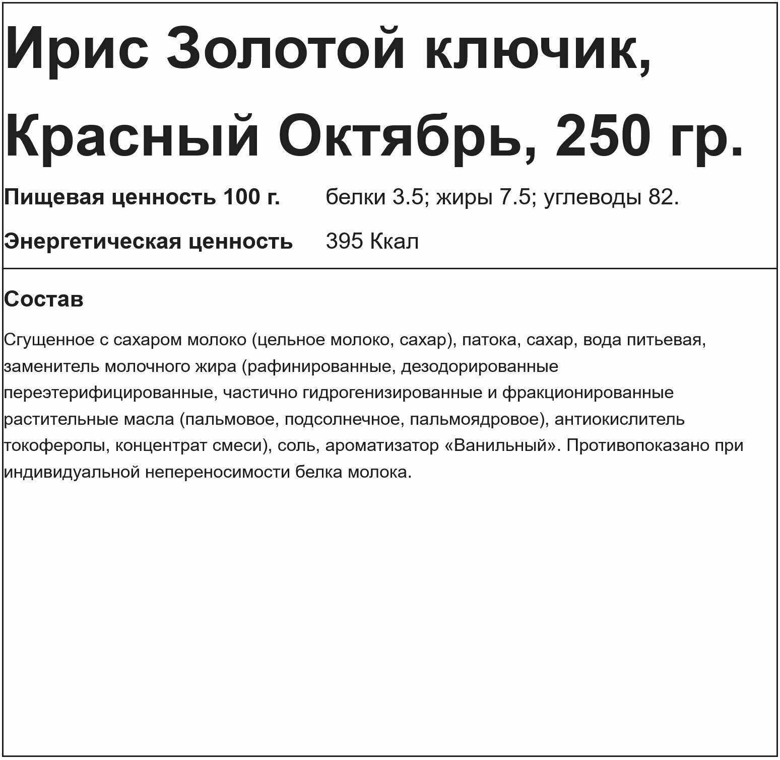 Ниже Вы можете прочитать отзывы на Ирис Золотой ключик, Красный Октябрь, 250 гр., ознакомится с подробными характеристиками, посмотреть интересные обзоры и фотографии на Ирис Золотой ключик, Красный Октябрь, 250 гр..