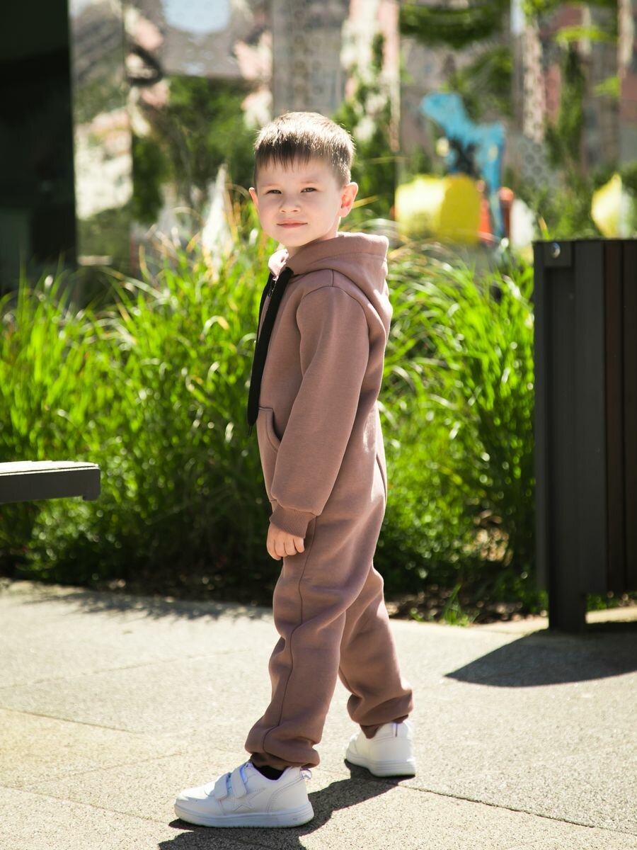 Комбинезон Веселый малыш Утепленный комбинезон футер с начесом , размер 128, мокко