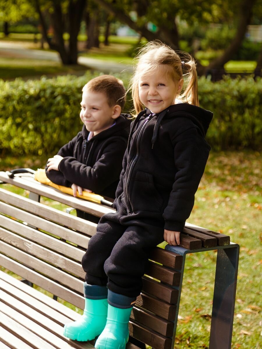 Комбинезон Веселый малыш Утепленный комбинезон футер с начесом , размер 98, черный