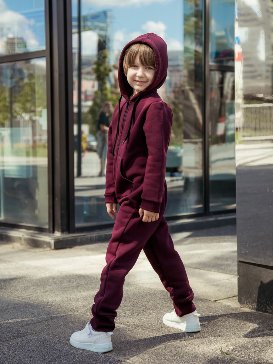 Комбинезон Веселый малыш Утепленный комбинезон футер с начесом , размер 140, бордовый