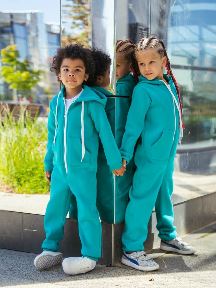 Комбинезон Веселый малыш Утепленный комбинезон футер с начесом , размер 140, Ментоловый