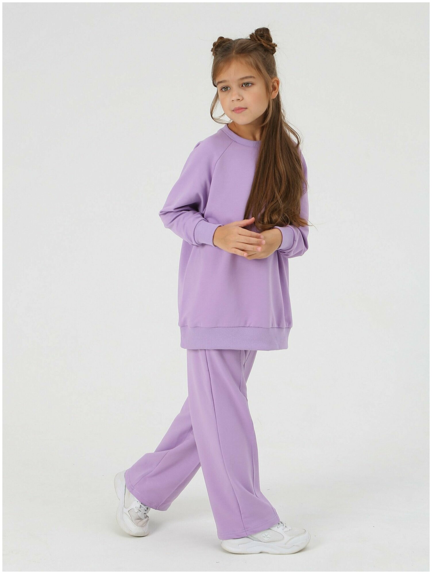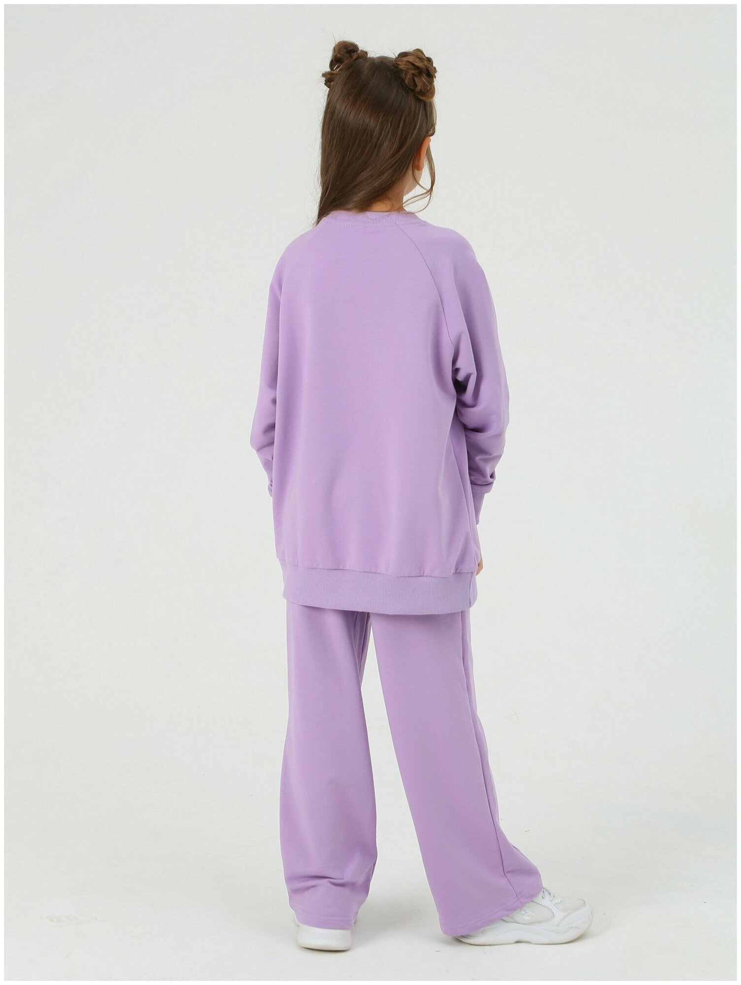 Купить Детский спортивный костюм, Mitra, штаны и лонгслив, теплый, футер, размер 134, сиреневый, осень - зима, для девочки, домашний костюм, повседневный