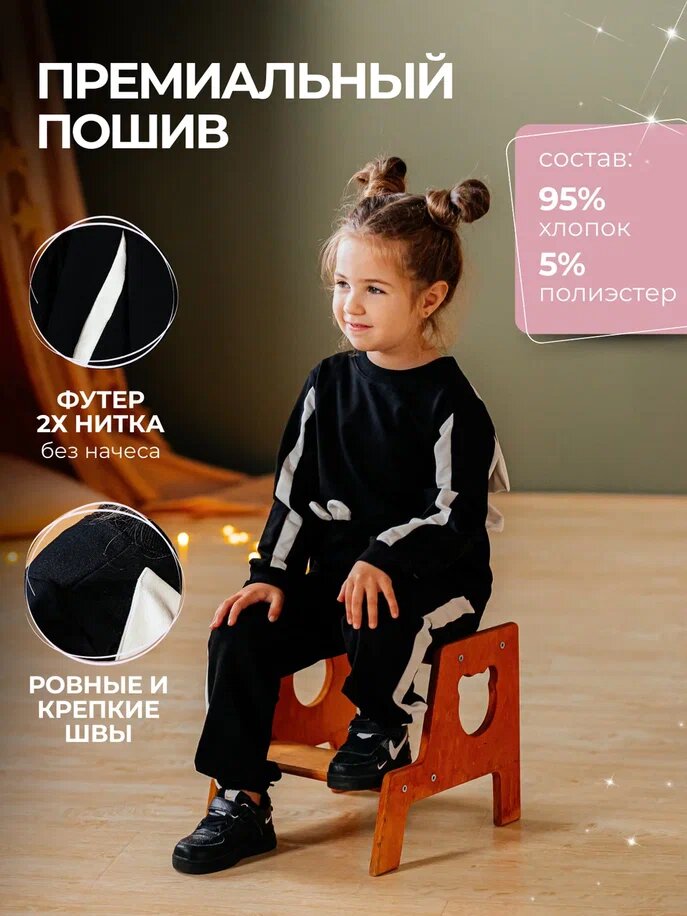 Костюм спортивный MakSiKi, размер 116, черный/белый