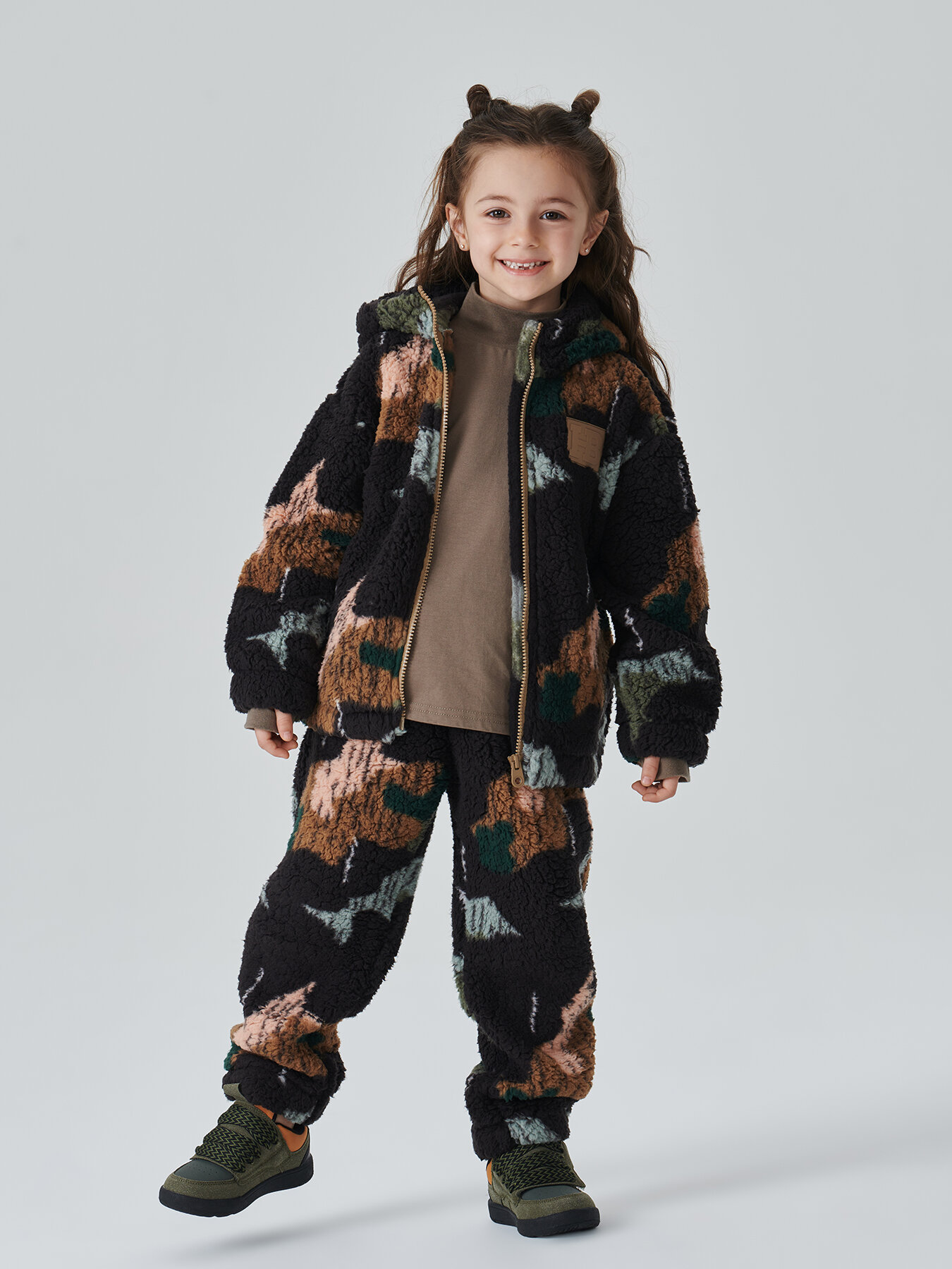 89088, Теплый флисовый костюм Happy Baby для мальчика, для девочки, демисезонный комплект, черный камуфляжный, 104-110