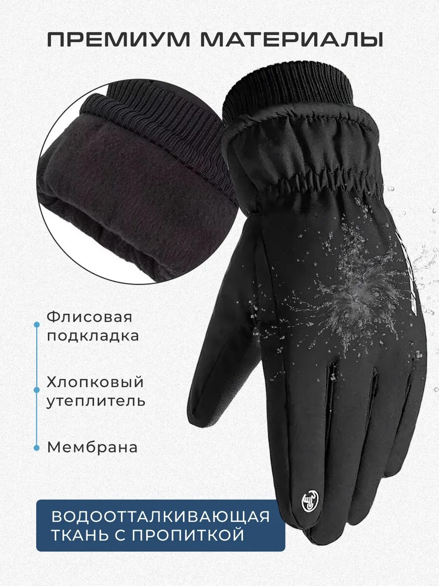 Перчатки тактические горнолыжные зимние / мужские лыжные перчатки теплые сноубордические повышенной прочности / цвет: черный, размер L
