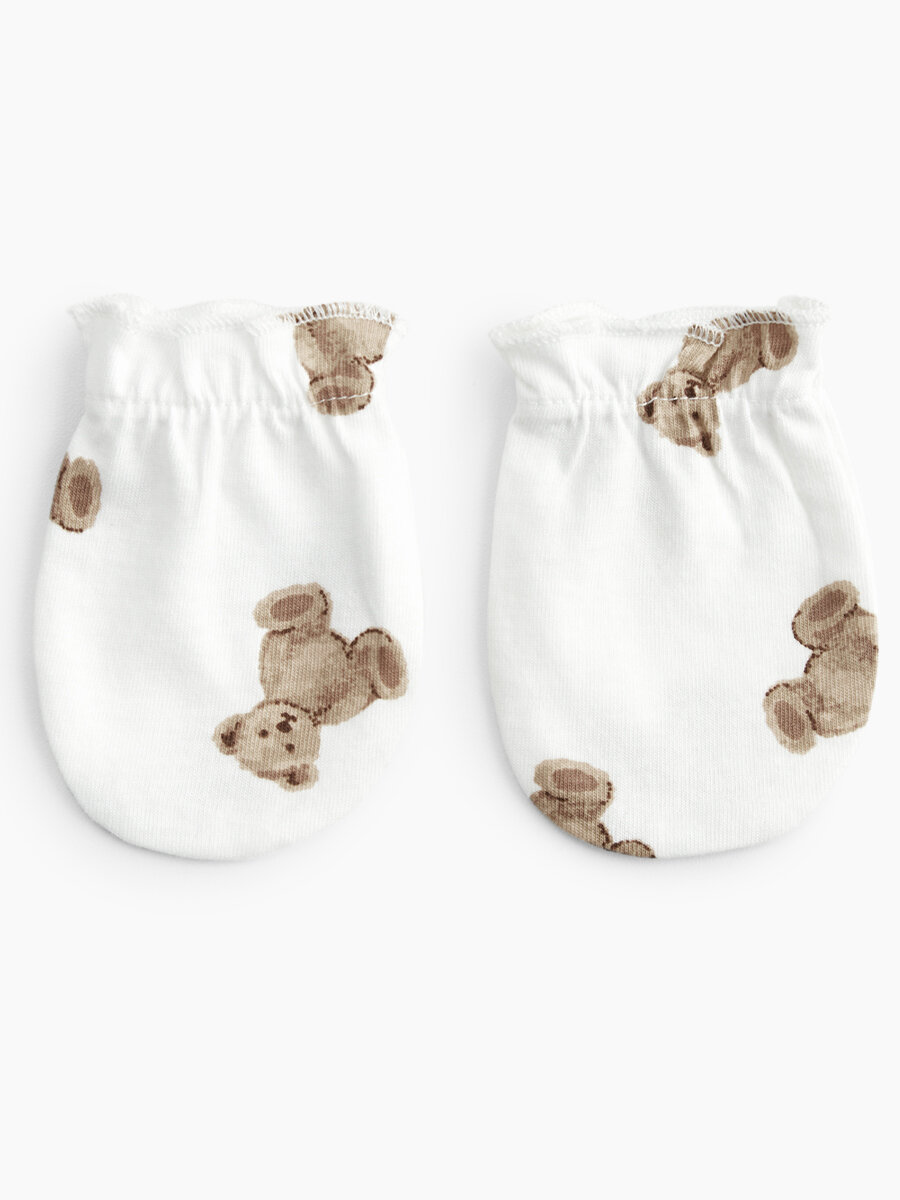 Купить 90129, Комплект рукавичек-антицарапок для новорожденных, в наборе 2 пары, с мишками и белые, размер 10