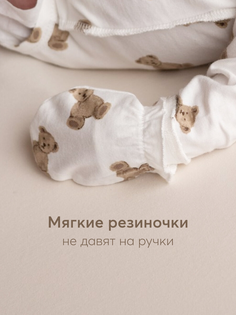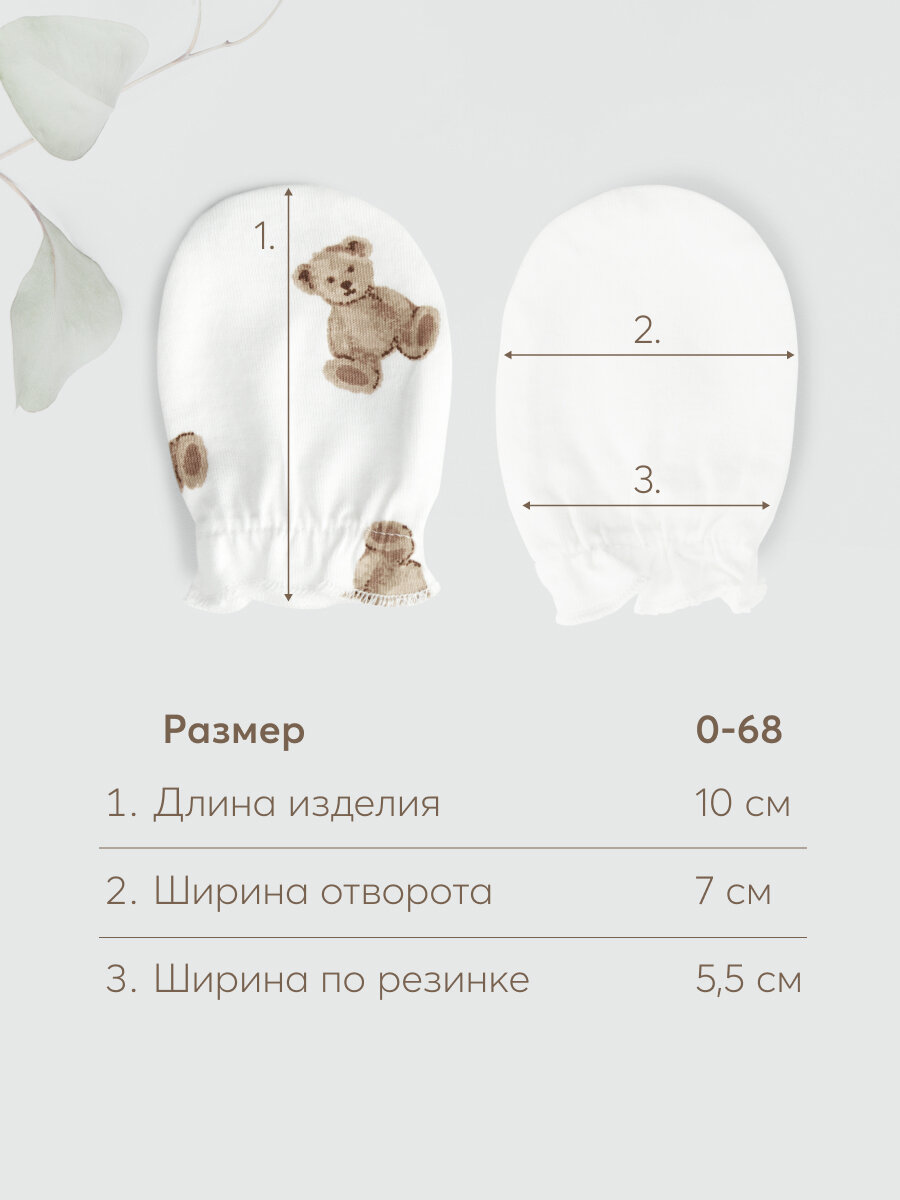 90129, Комплект рукавичек-антицарапок для новорожденных, в наборе 2 пары, с мишками и белые, размер 10 интересное: