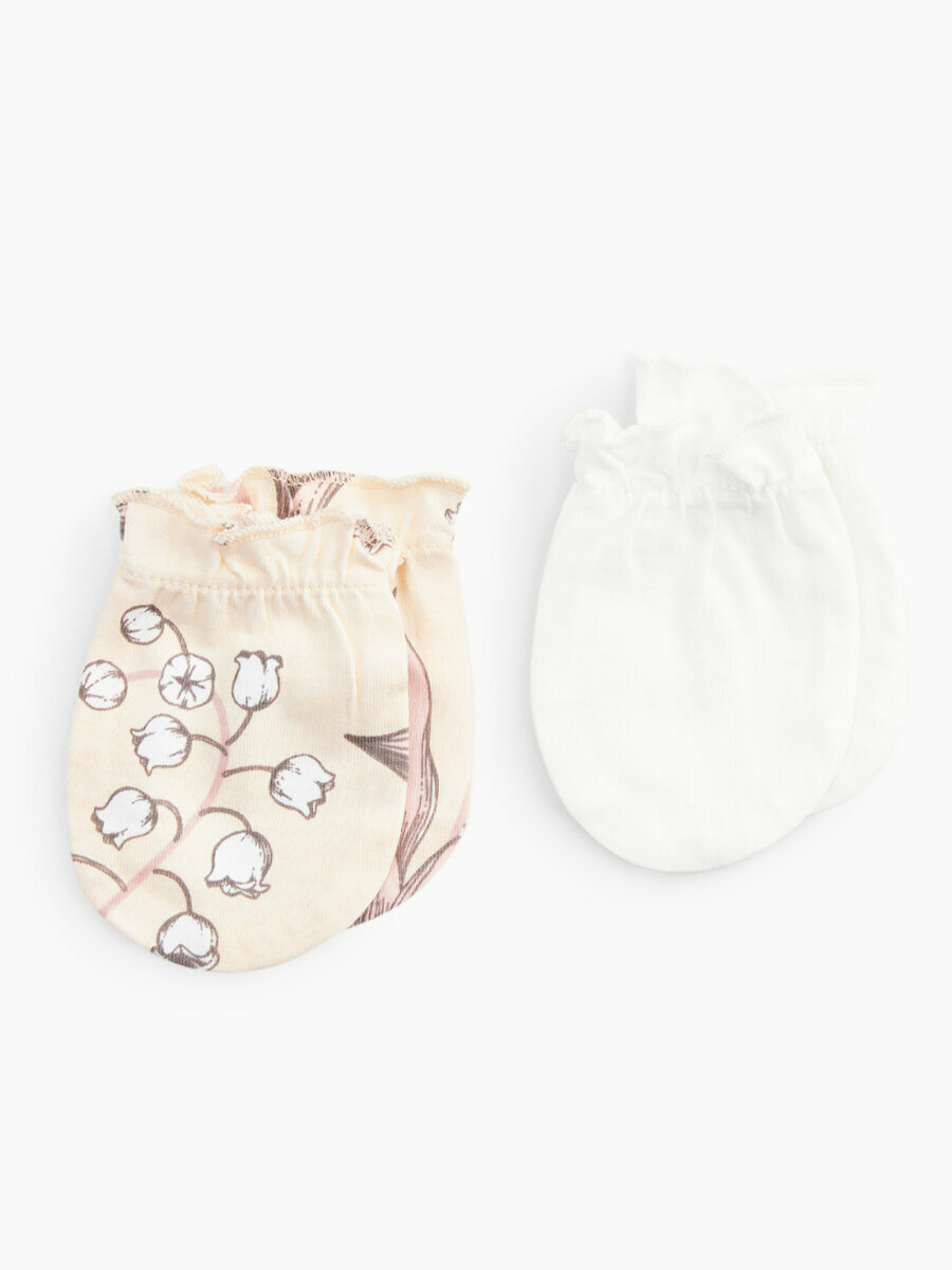90129, Комплект рукавичек-антицарапок для новорожденных, в наборе 2 пары, с мишками и белые, размер 10