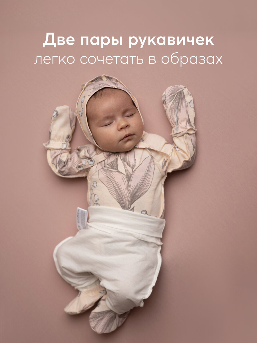 90129, Комплект рукавичек-антицарапок для новорожденных, в наборе 2 пары, розовые и белые, размер 10 интересное: