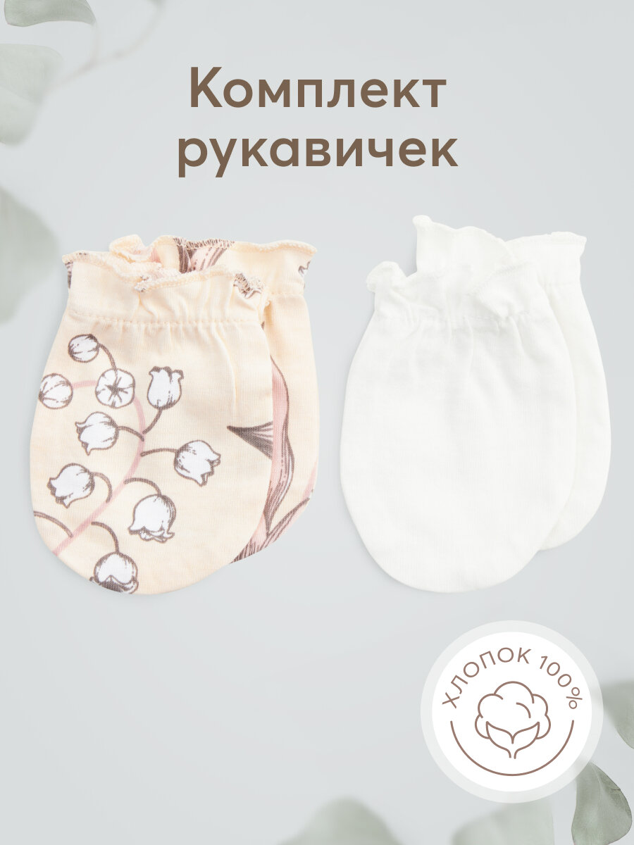 Купить 90129, Комплект рукавичек-антицарапок для новорожденных, в наборе 2 пары, розовые и белые, размер 10