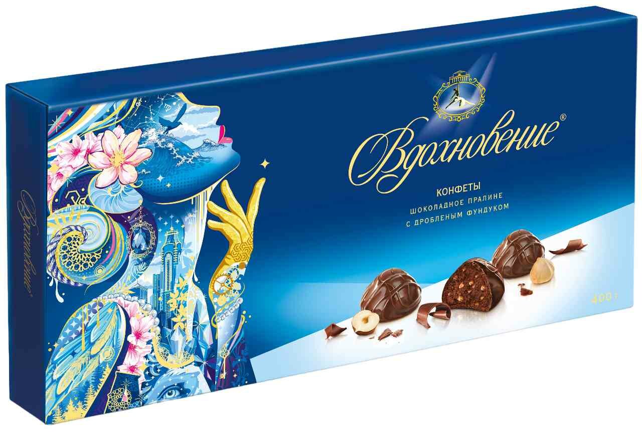 Конфеты Вдохновение Шоколадное пралине с дробленым фундуком, 400 г, картонная коробка, 24 шт. в уп.