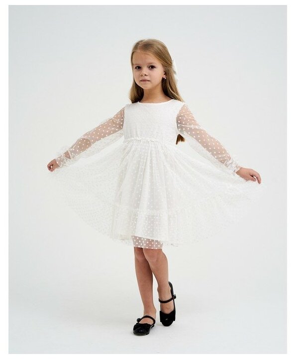 Платье детское с бусинками KAFTAN р. 32 (110-116 см), белый