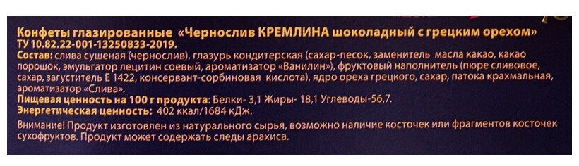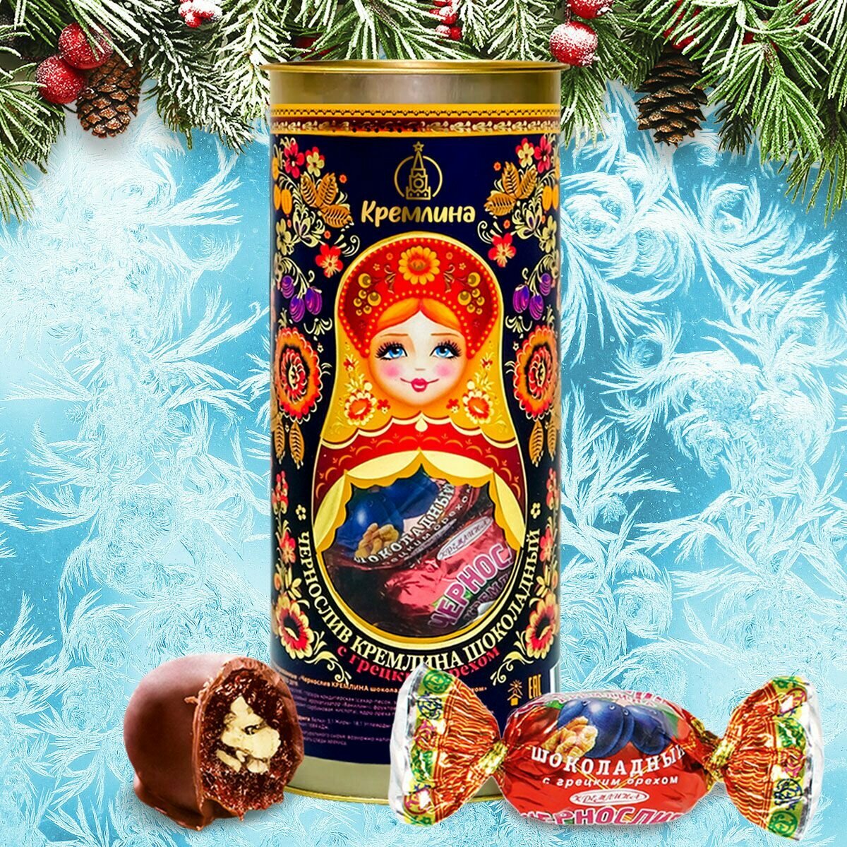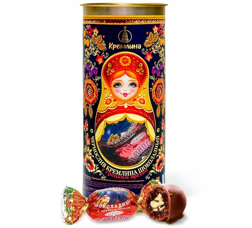 Купить Конфеты Кремлина чернослив шок. с грец. орехом,Матрешка Хохлома, 250г