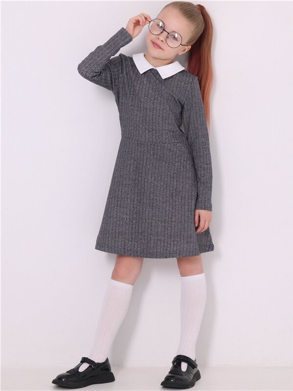 Платье для девочки школьное синее трикотажное футер Апрель 1ДПД4503258н/989/*/4045/*/*/*/* серый,белый 64-128