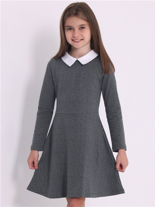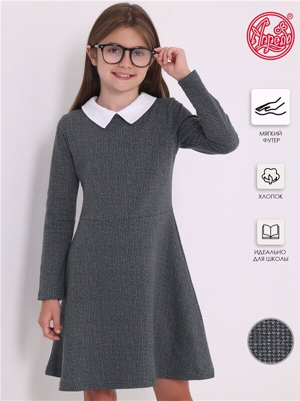 Купить Платье для девочки школьное синее трикотажное футер Апрель 1ДПД4503258н/989/*/4045/*/*/*/* серый,белый 76-146