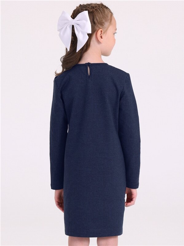 Платье для девочки школьное синее трикотажное Апрель 1ДПД4503258н/989/*/5157/*/*/*/* синий,белый 76-146