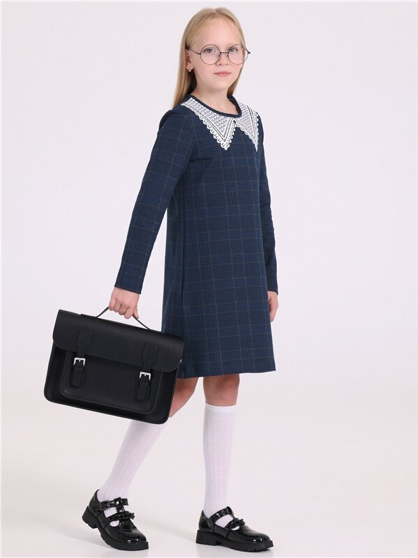 Платье для девочки школьное синее трикотажное Апрель 1ДПД4503258н/989/*/5157/*/*/*/* синий,белый 72-140