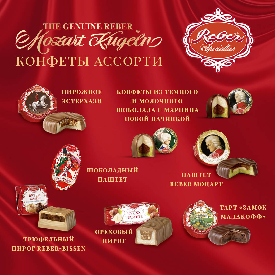 Подарочный набор Reber Моцарт шоколадных конфет с окном, 285 г интересное: