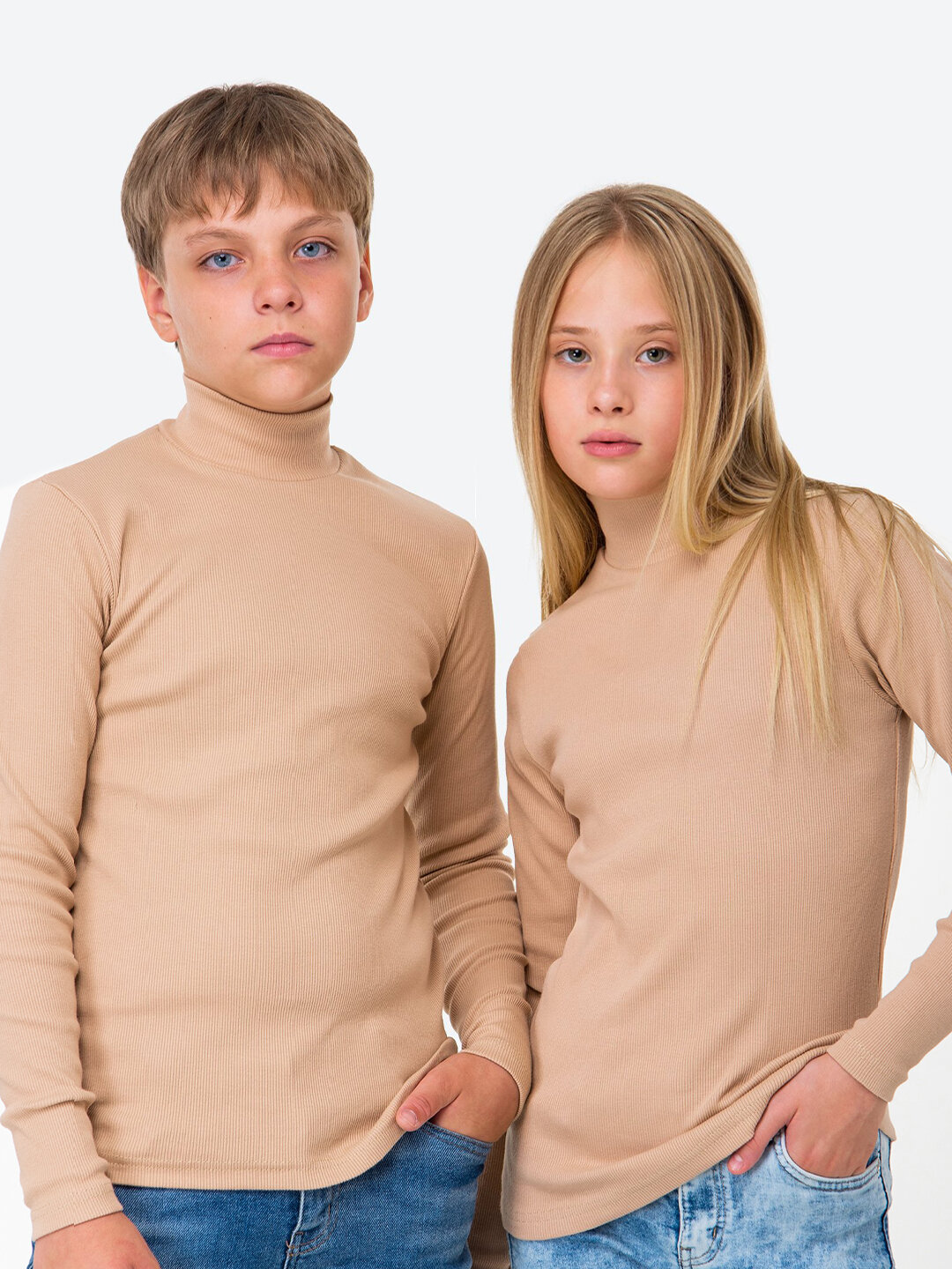 СохранитьВодолазка детская школьная в рубчик для мальчика и девочки HappyFox, HF5504 размер 128, цвет песочный интересное: