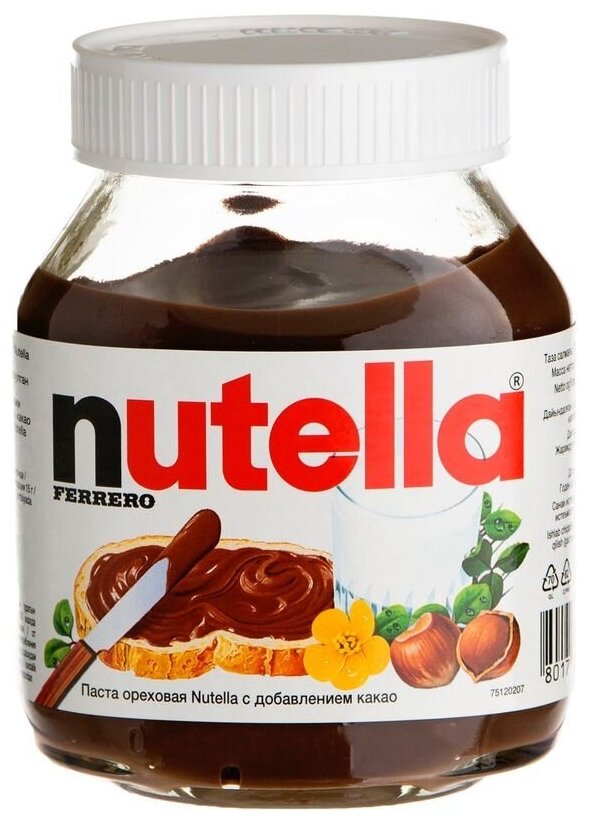 Паста ореховая с добавлением какао Nutella, 630 г, стеклянная банка