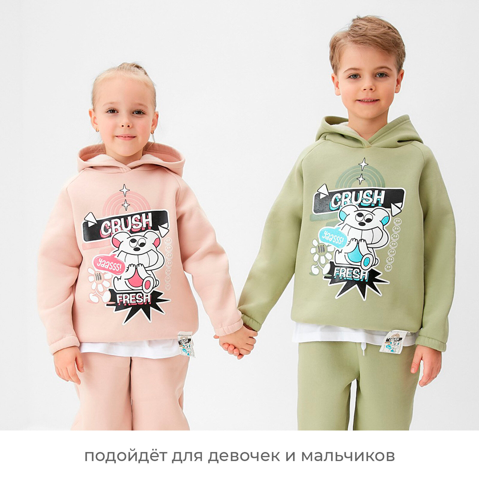 Худи crockid КР 302690-1/сахар к534, размер 72/140, белый
