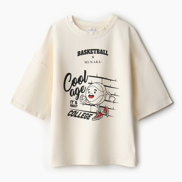 MINAKU Футболка детская MINAKU: bascetball kids, цвет молочный, рост 140 см