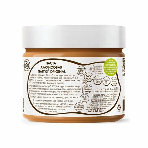 Арахисовая паста Nattys Original без добавок, 325 г интересное: