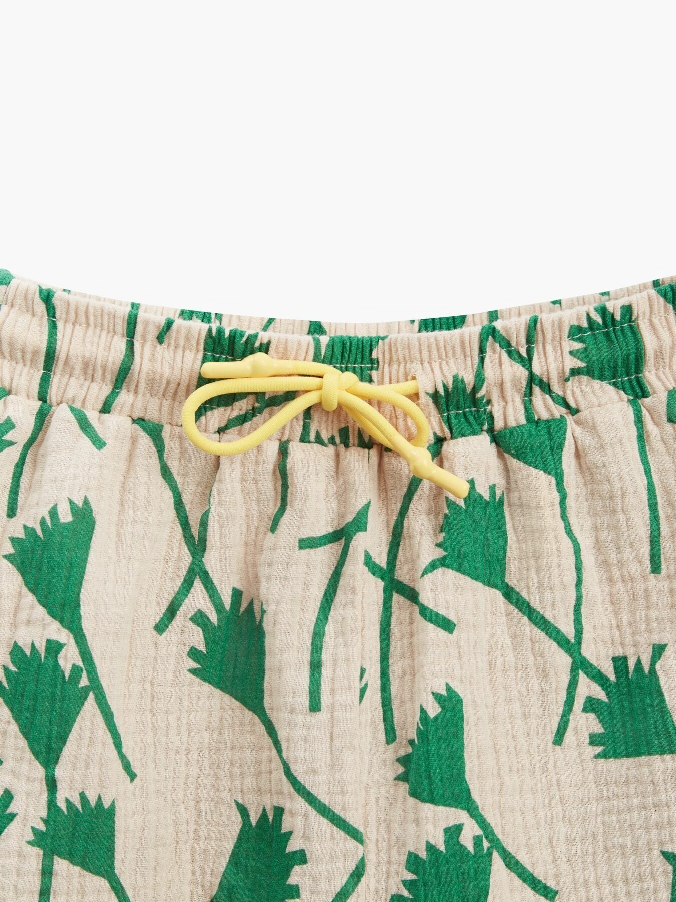 Купить 88131, Шорты детские муслиновые Happy Baby, шорты для девочки, для мальчика, на лето, на пляж, хлопок 100%, белые с зеленым узором, размер 110-116