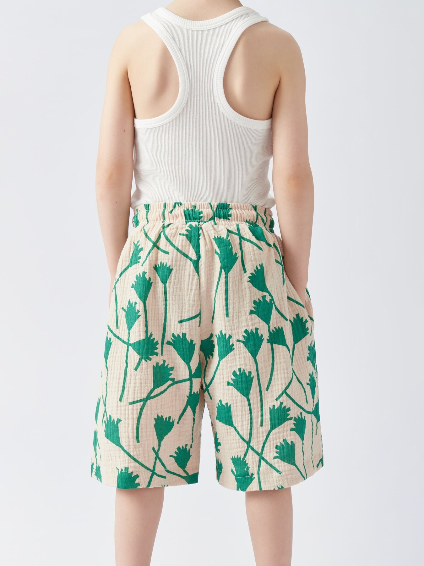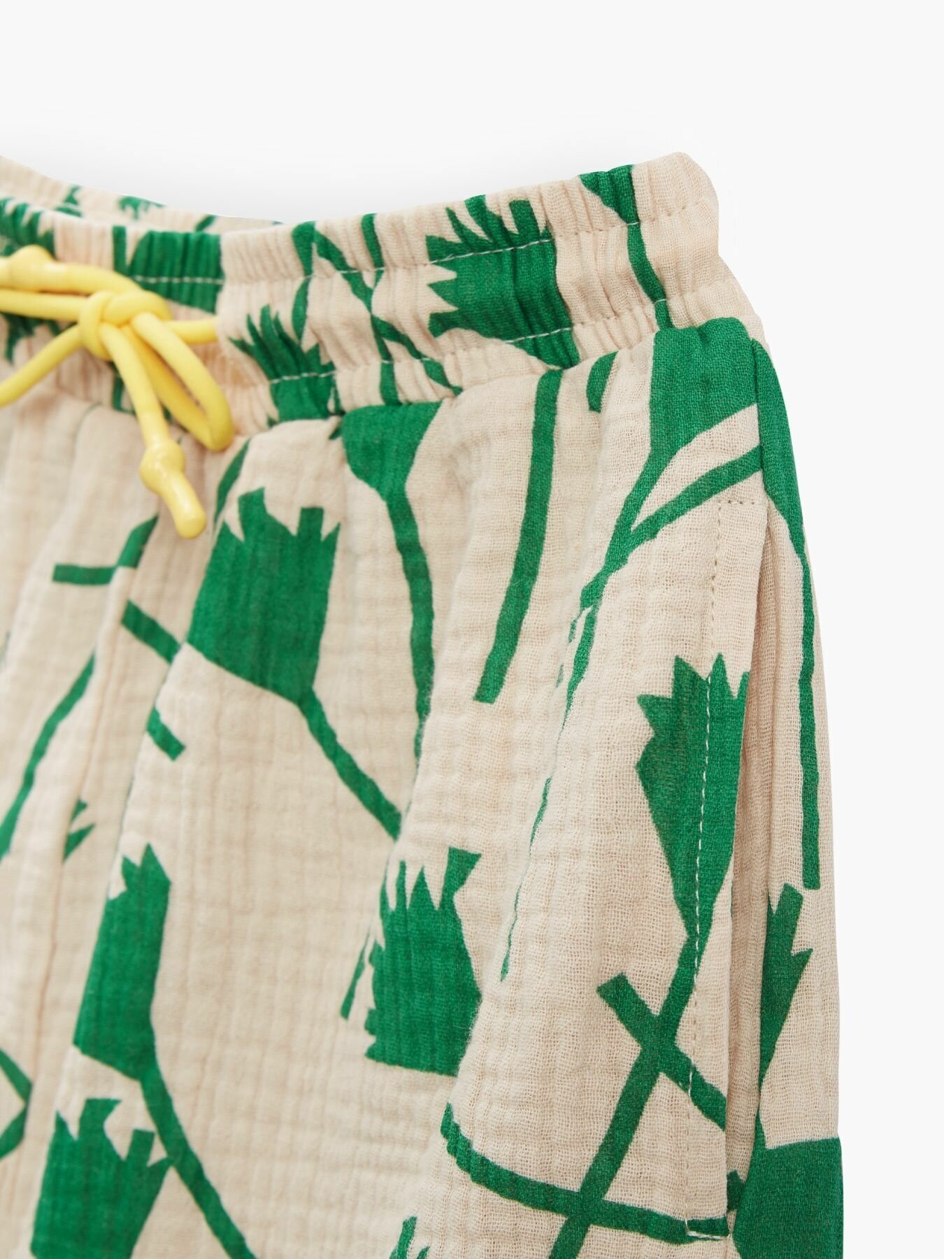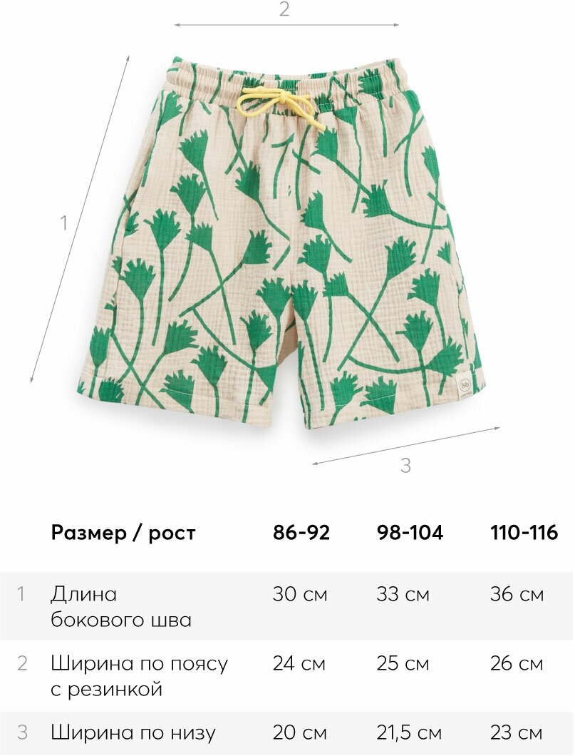 Сохранить88131, Шорты детские муслиновые Happy Baby, шорты для девочки, для мальчика, на лето, на пляж, хлопок 100%, белые с зеленым узором, размер 110-116 интересное: