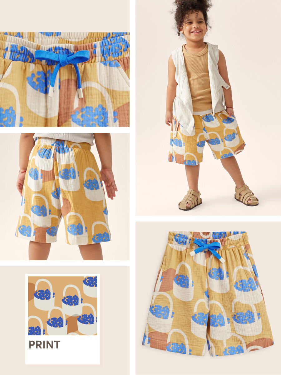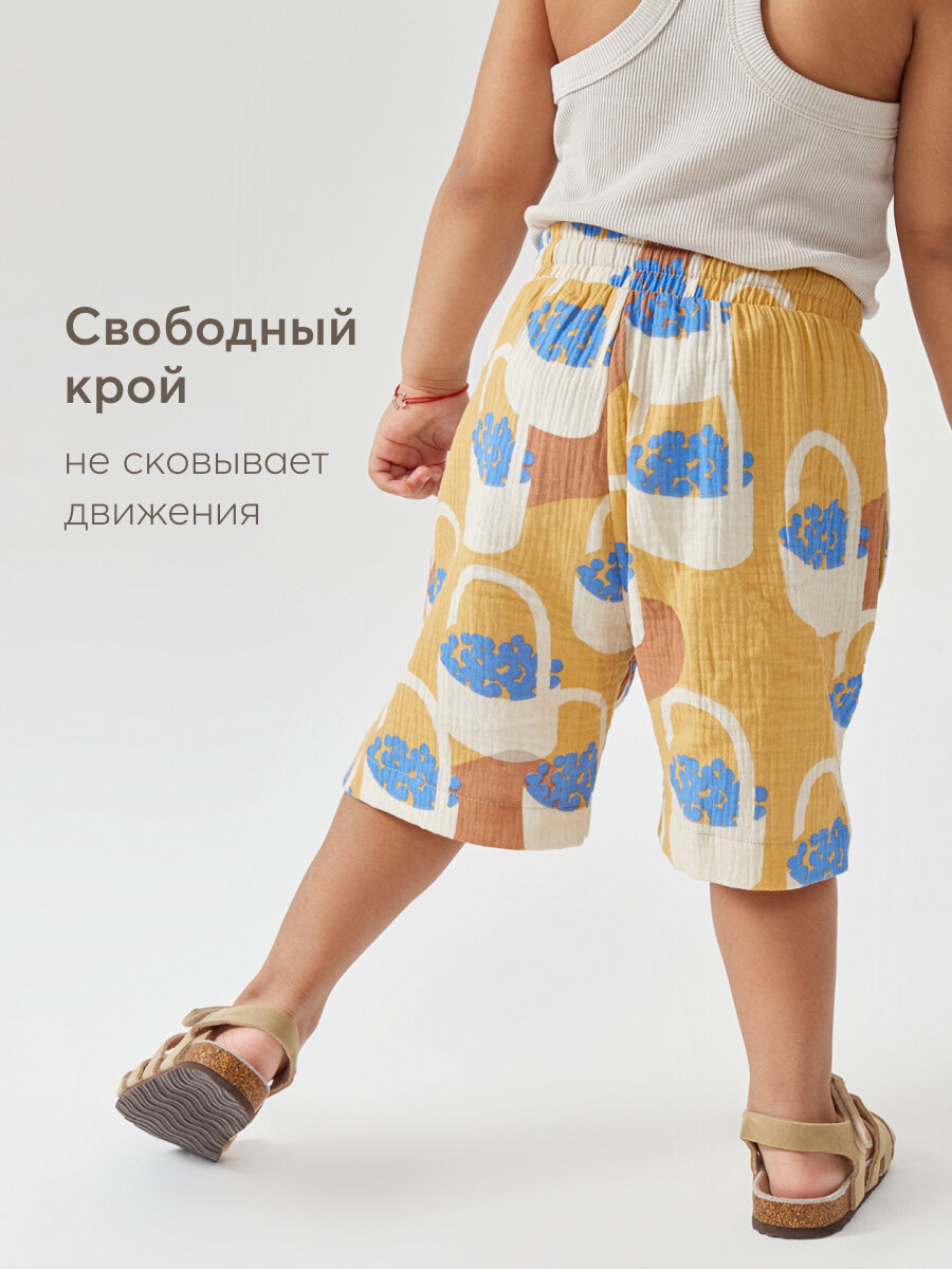 Сохранить88131, Шорты детские муслиновые Happy Baby, шорты для мальчика и для девочки, детская одежда на лето на пляж, хлопок 100%, коричневые с цветами, размер 122-128 интересное: