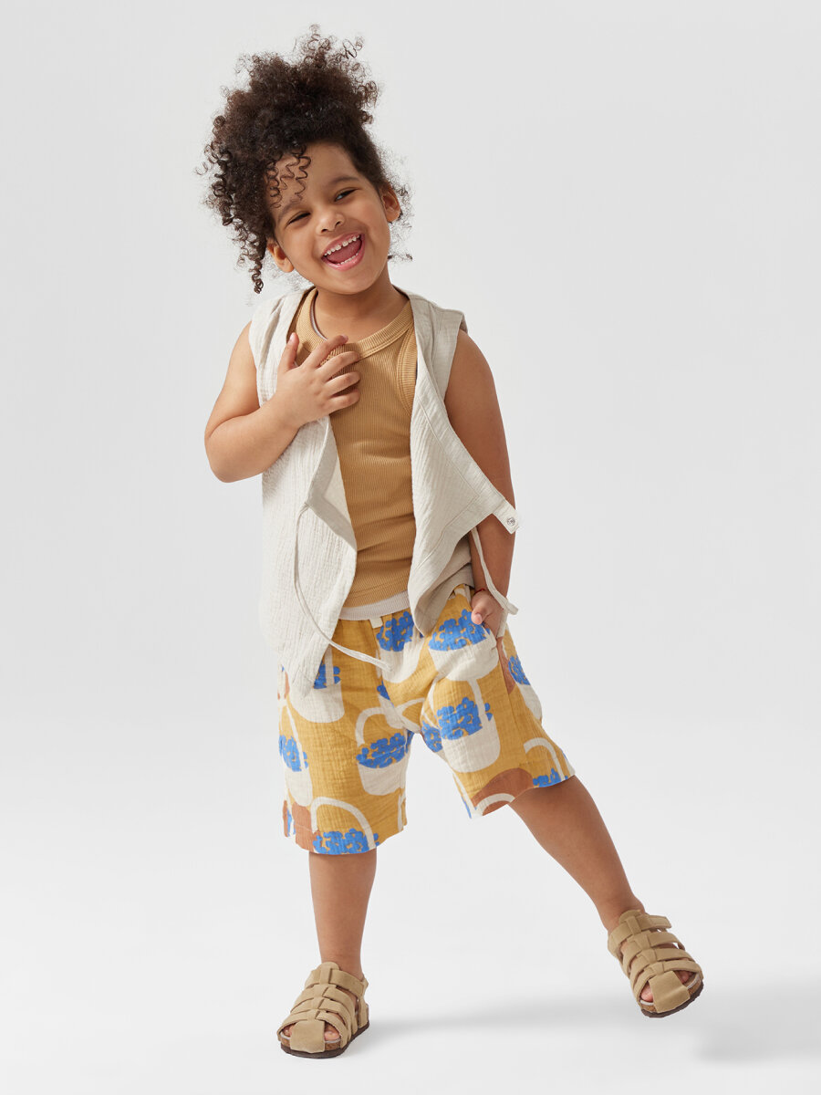 88131, Шорты детские муслиновые Happy Baby, шорты для мальчика и для девочки, детская одежда на лето на пляж, хлопок 100%, бежевые, размер 128-134