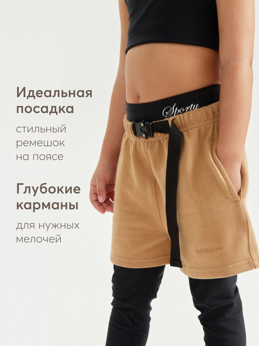 88225, Шорты детские хлопковые Happy Baby, с ремешком, для девочки и для мальчика, шорты летние, коричневые, размер 128-134