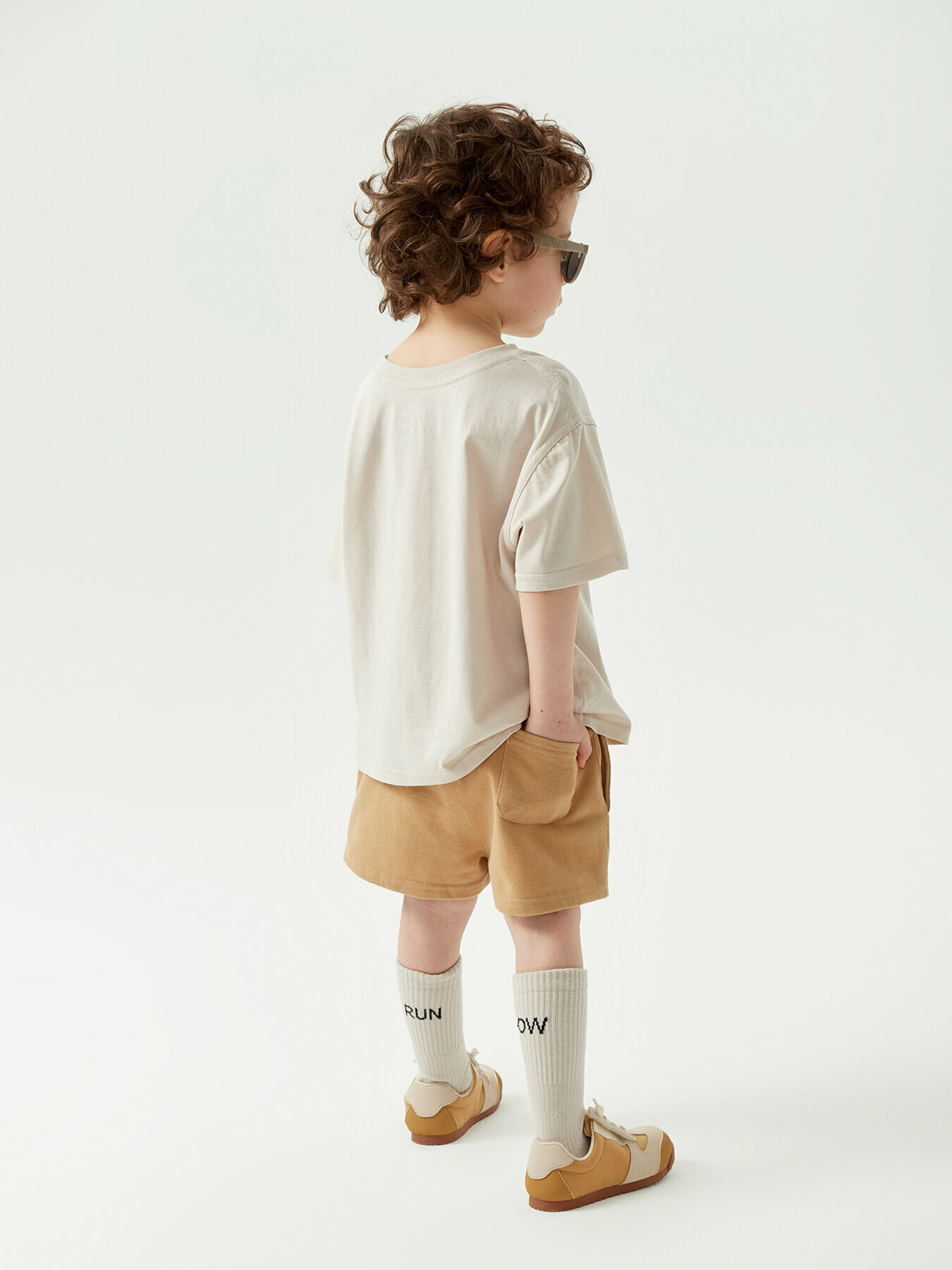 88225, Шорты детские хлопковые Happy Baby, с ремешком, для девочки и для мальчика, шорты летние, бежевые, размер 128-134