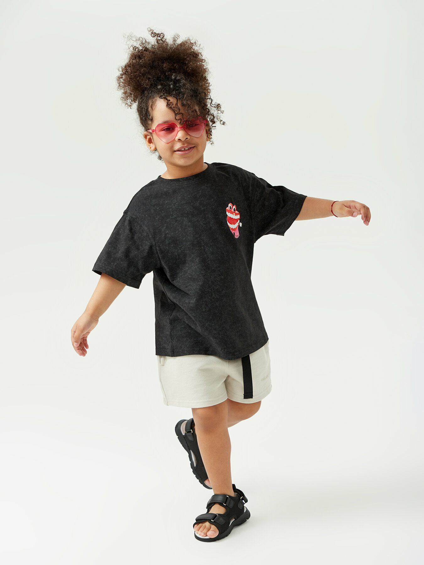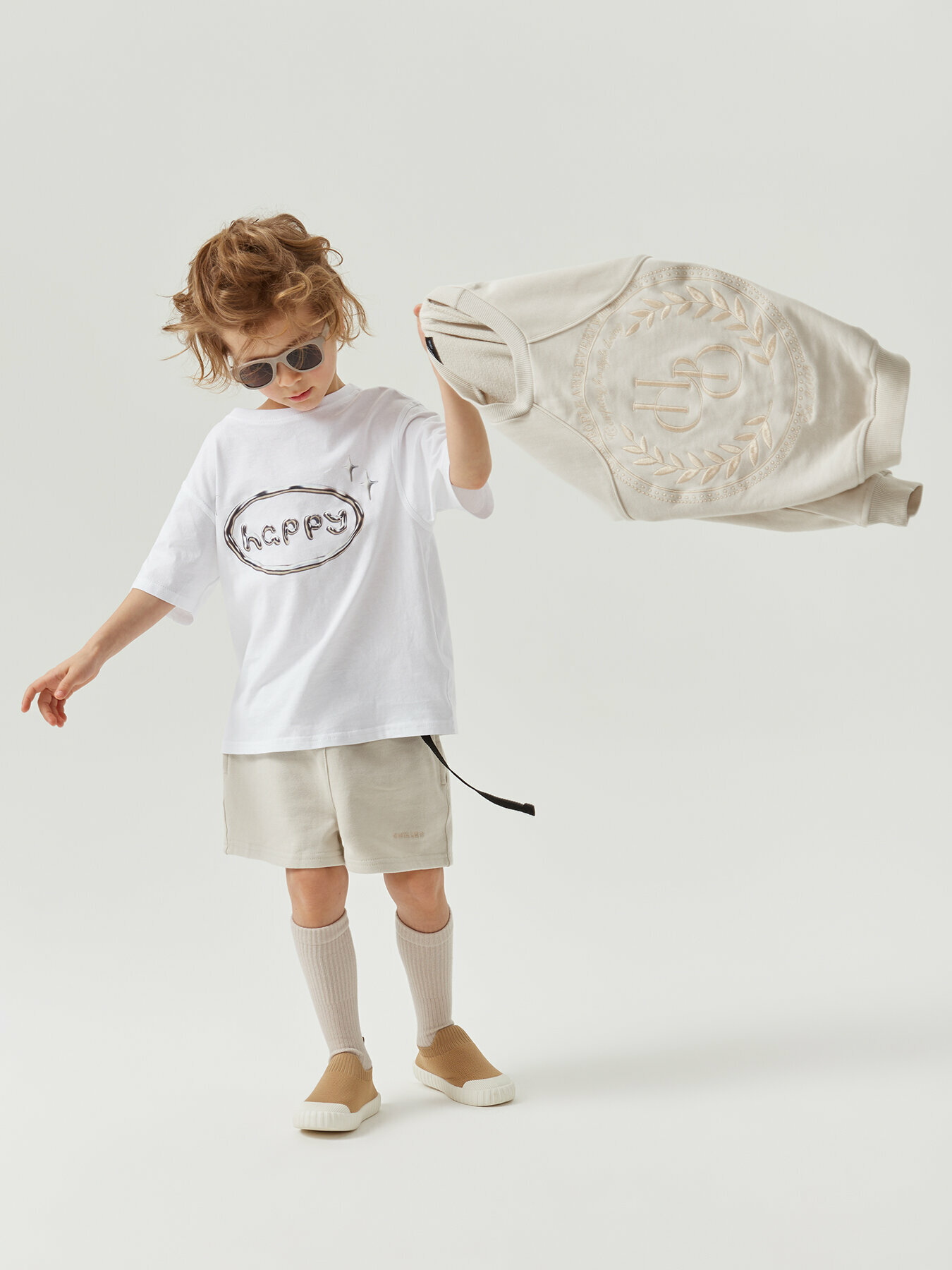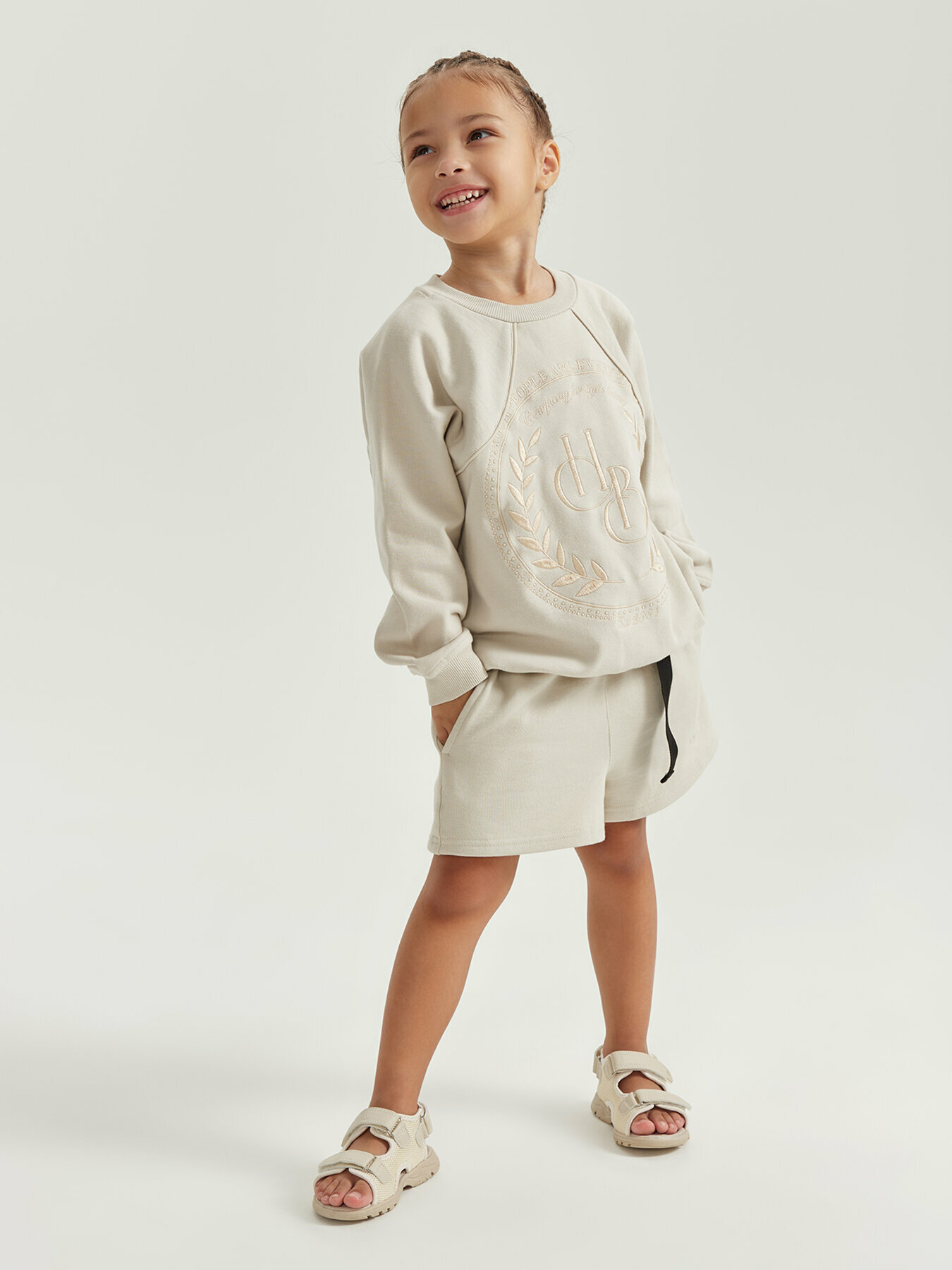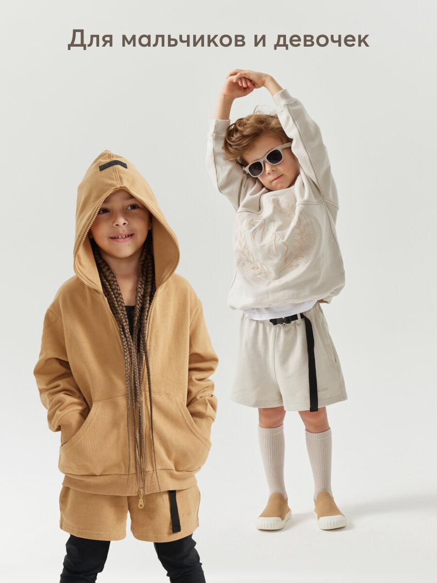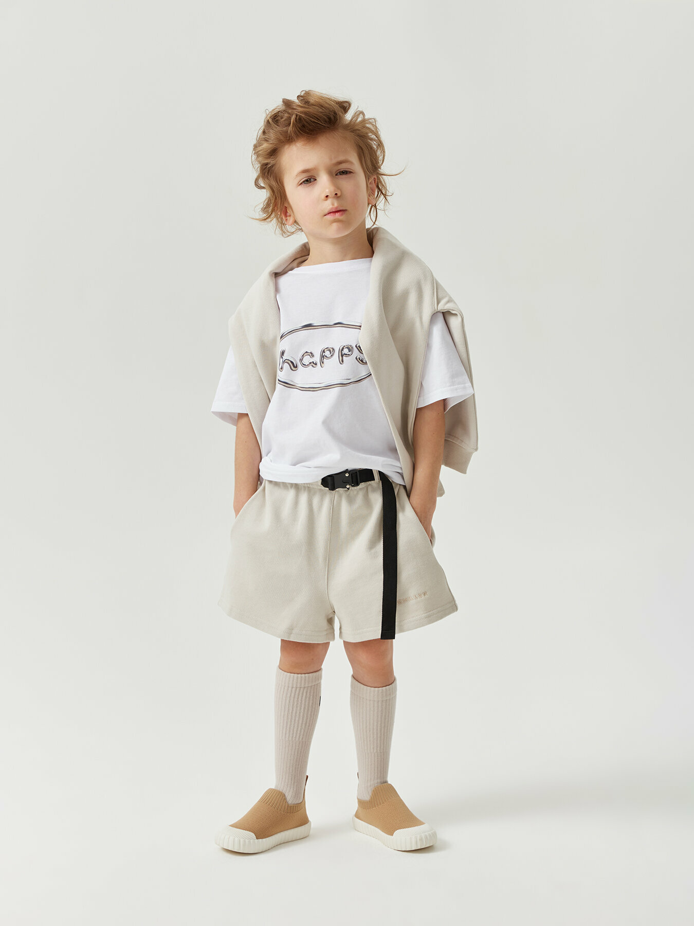 Купить 88225, Шорты детские хлопковые Happy Baby, с ремешком, для девочки и для мальчика, шорты летние, бежевые, размер 128-134