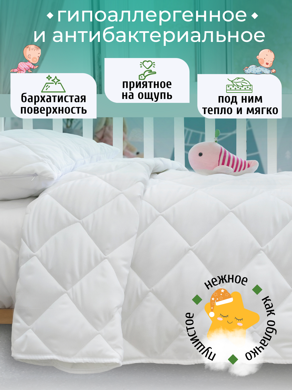 Комплект одеяло детское 110х140 см + подушка детская 40х60 см Бамбук Мягкий сон интересное: