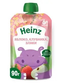 Пюре Heinz яблоко, клубника, злаки 90г с 6 месяцев, 12шт интересное:
