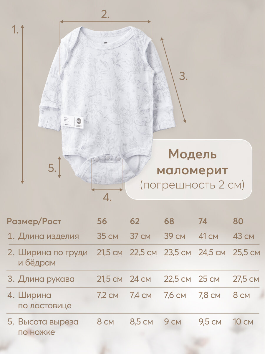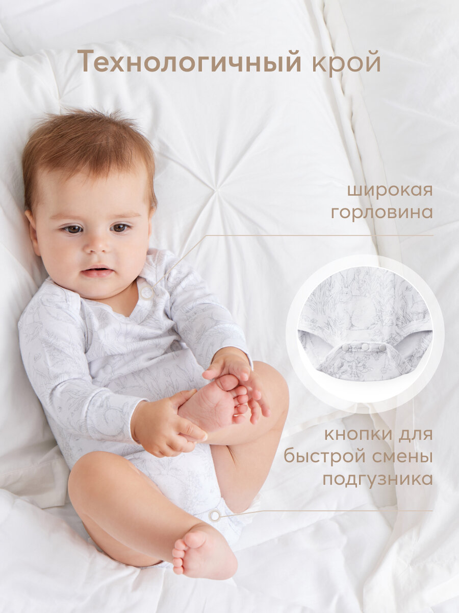 90096, Боди для новорожденных Happy Baby, боди с длинным рукавом для мальчика и девочки, песочник для малышей, набор 2 шт., молочное и белое с мишками, рост 56