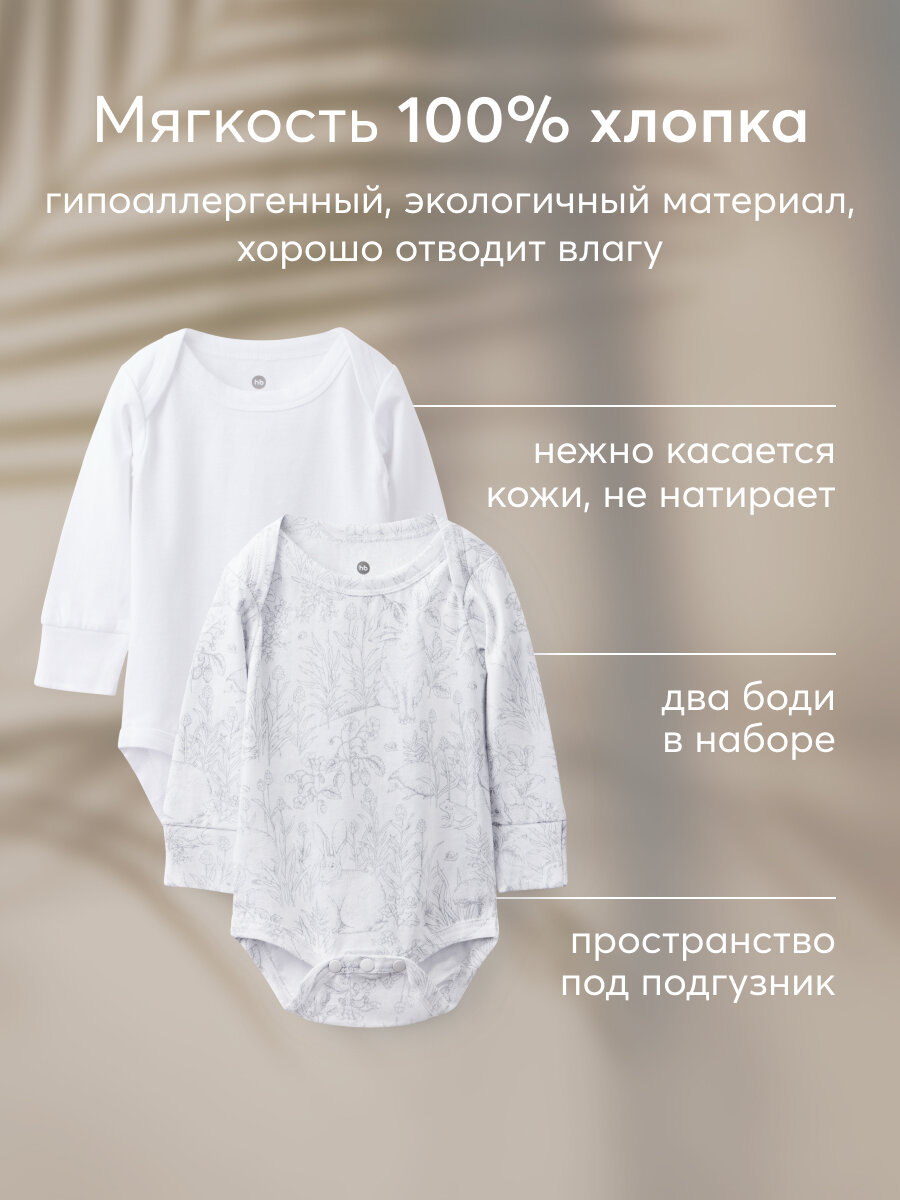 Сохранить90096, Боди для новорожденных Happy Baby, с длинным рукавом, набор 2 шт., белое с узором и белое, рост 68 интересное: