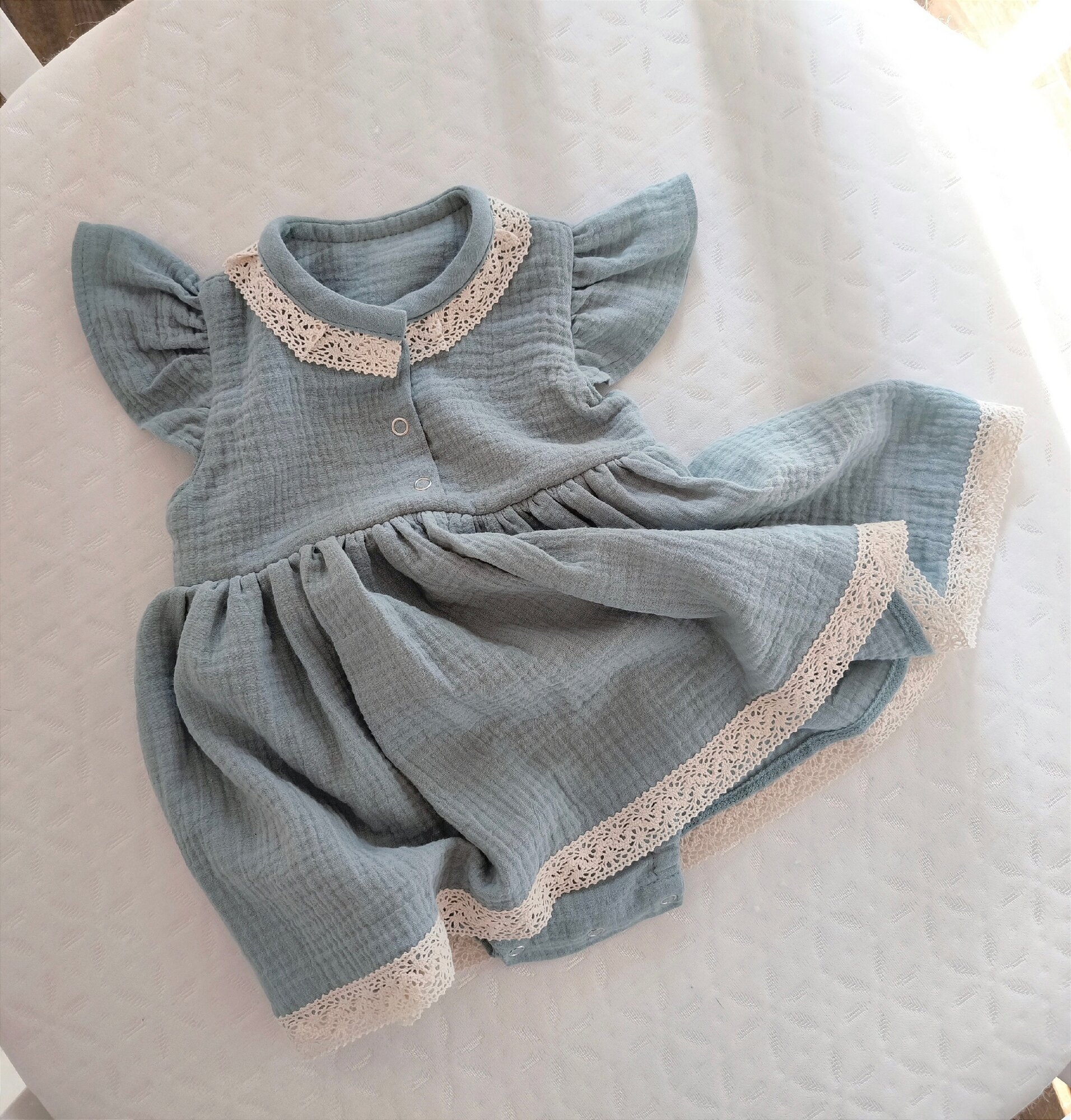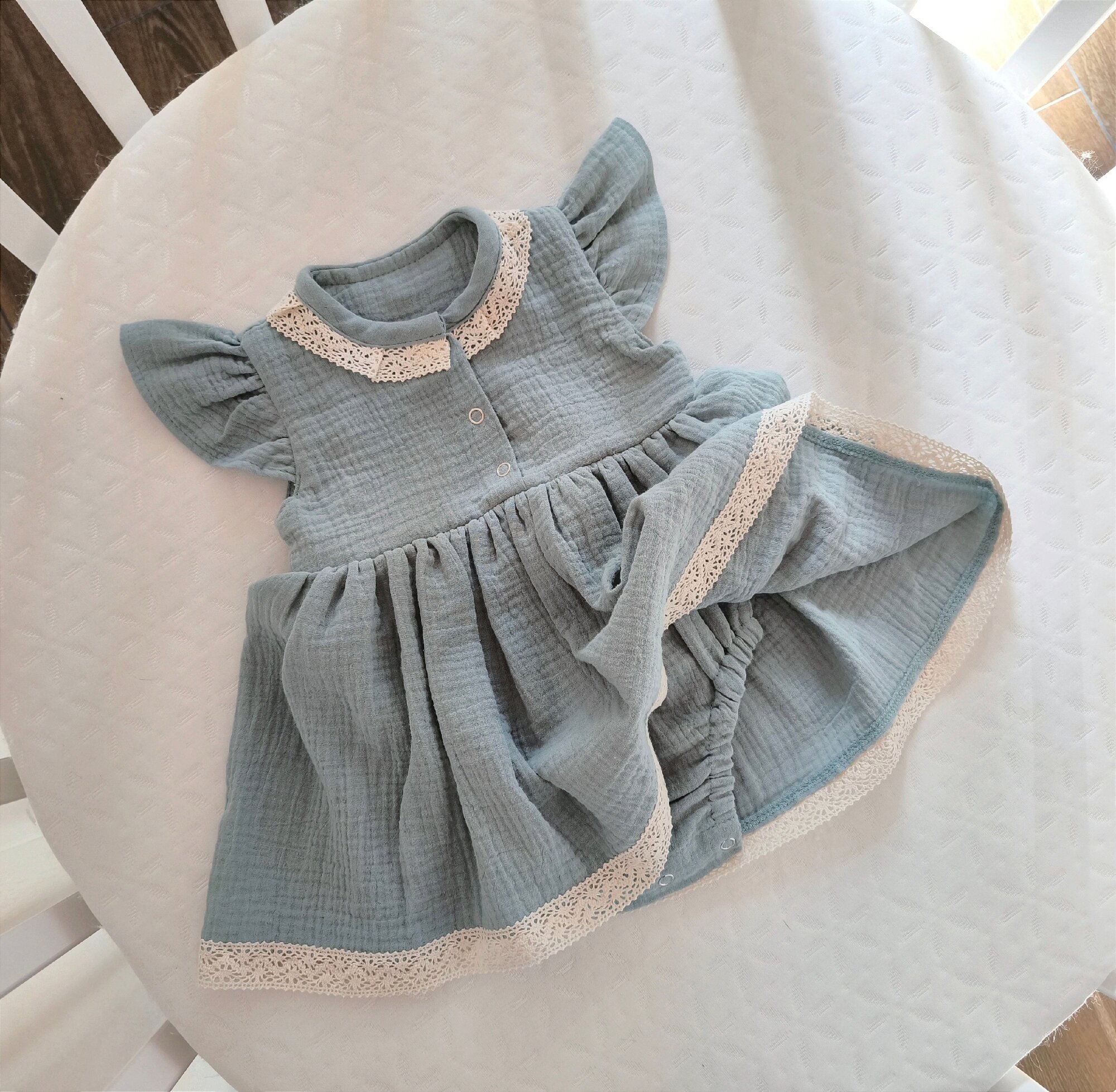 Платье-Боди для девочек, размер 62 ( до 2-4мес), MAMINY ZAPISKY, цвет пыльная полынь (зеленый)
