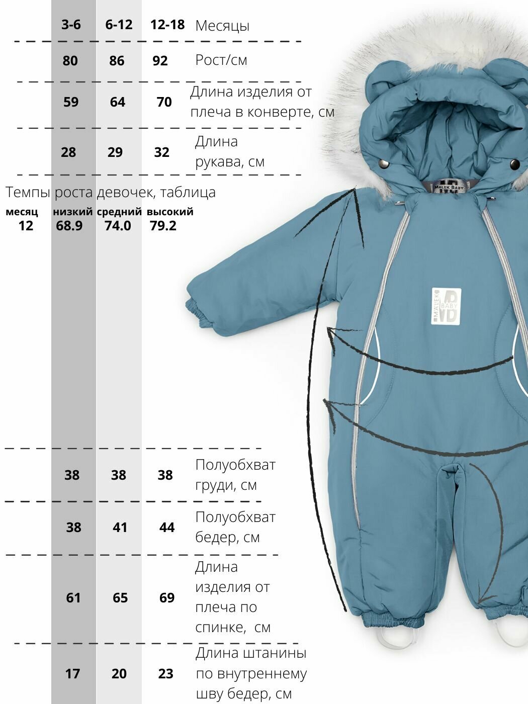 Комбинезон для новорожденных зимний детский. MaLeK BaBy. Голубой, 263ш/2 (80 см)
