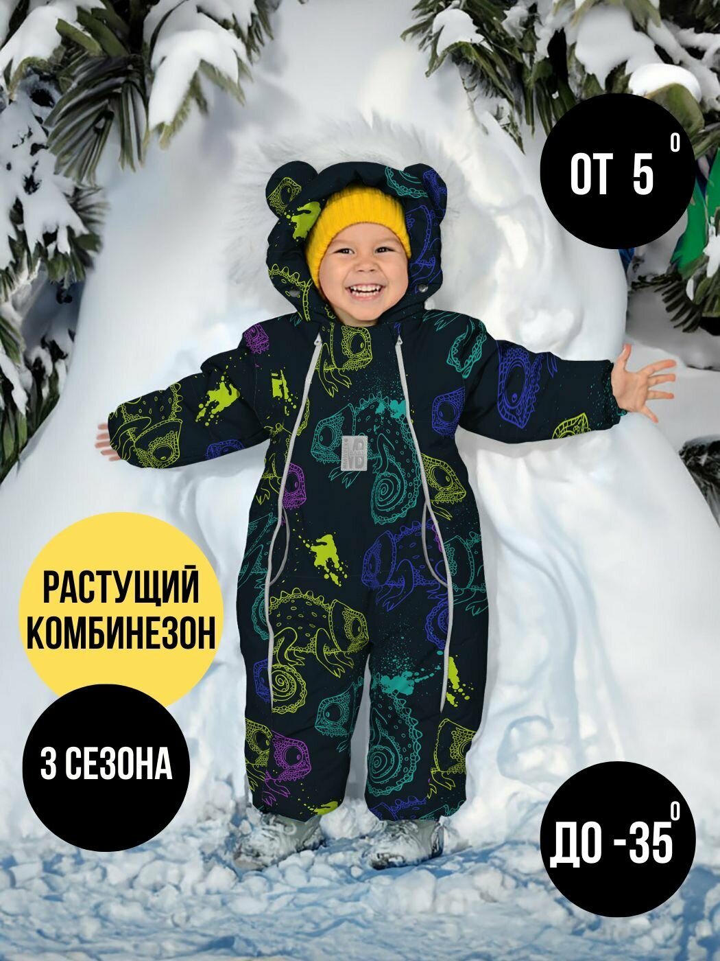 Комбинезон-трансформер детский зимний. Malek Baby. Львята + зеленые слонята, 263ш/2 (80 см)