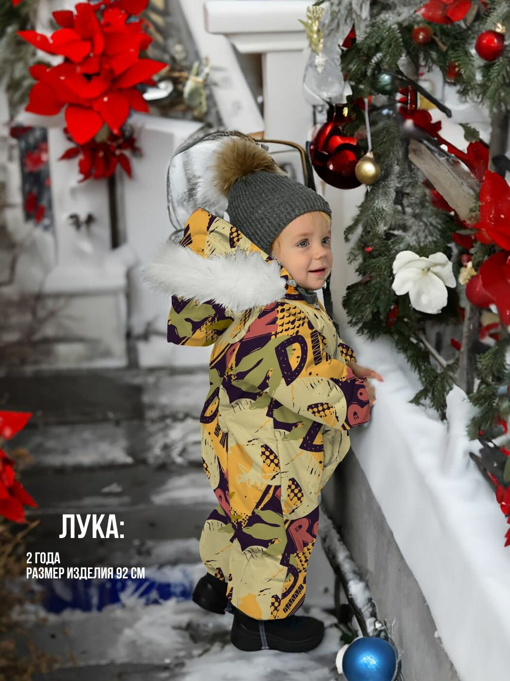 Комбинезон-трансформер детский зимний. Malek Baby. Львята + зеленые слонята, 263ш/2 (80 см)