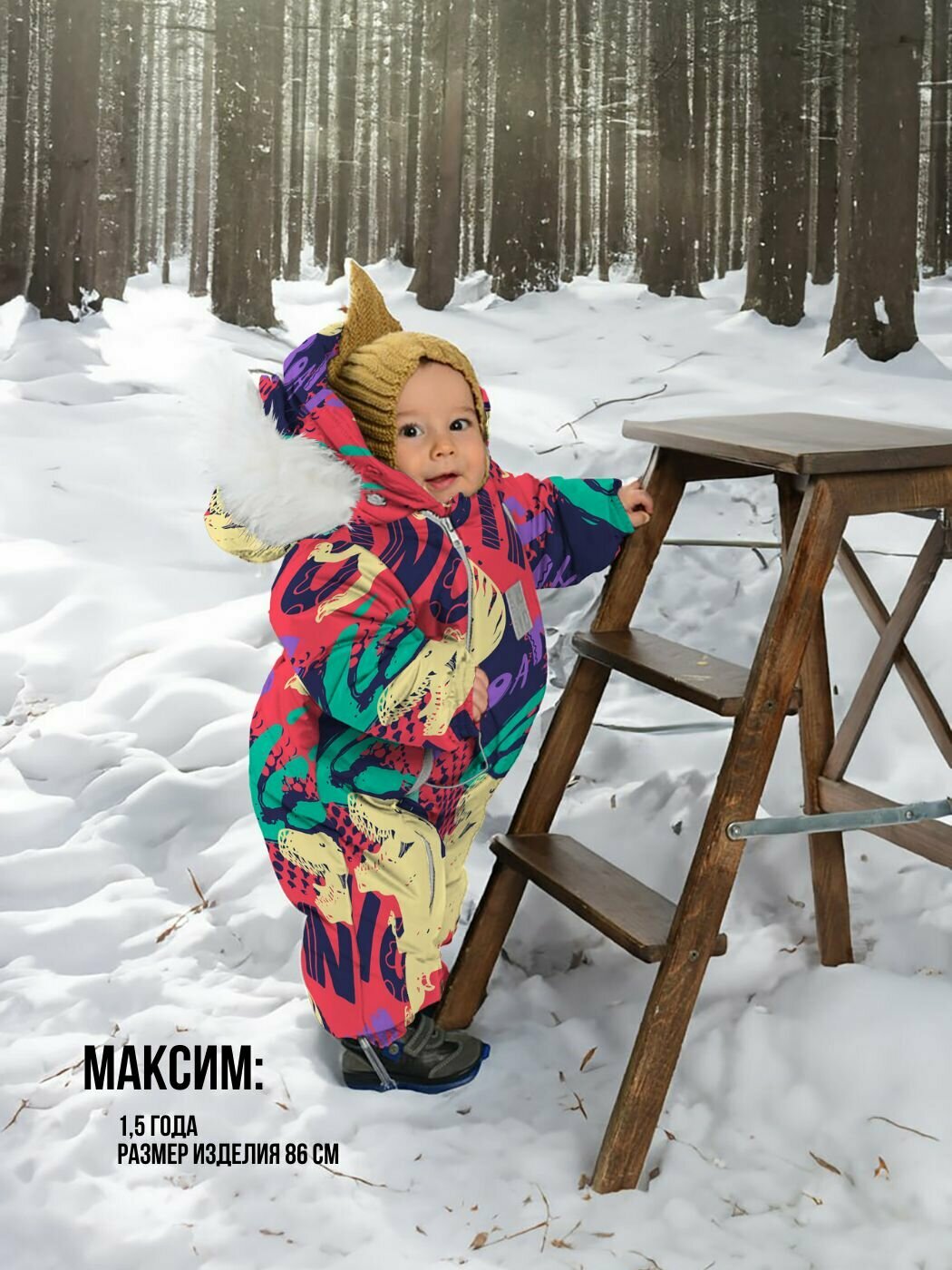 Комбинезон-трансформер детский зимний. Malek Baby. Львята + зеленые слонята, 263ш/2 (80 см)
