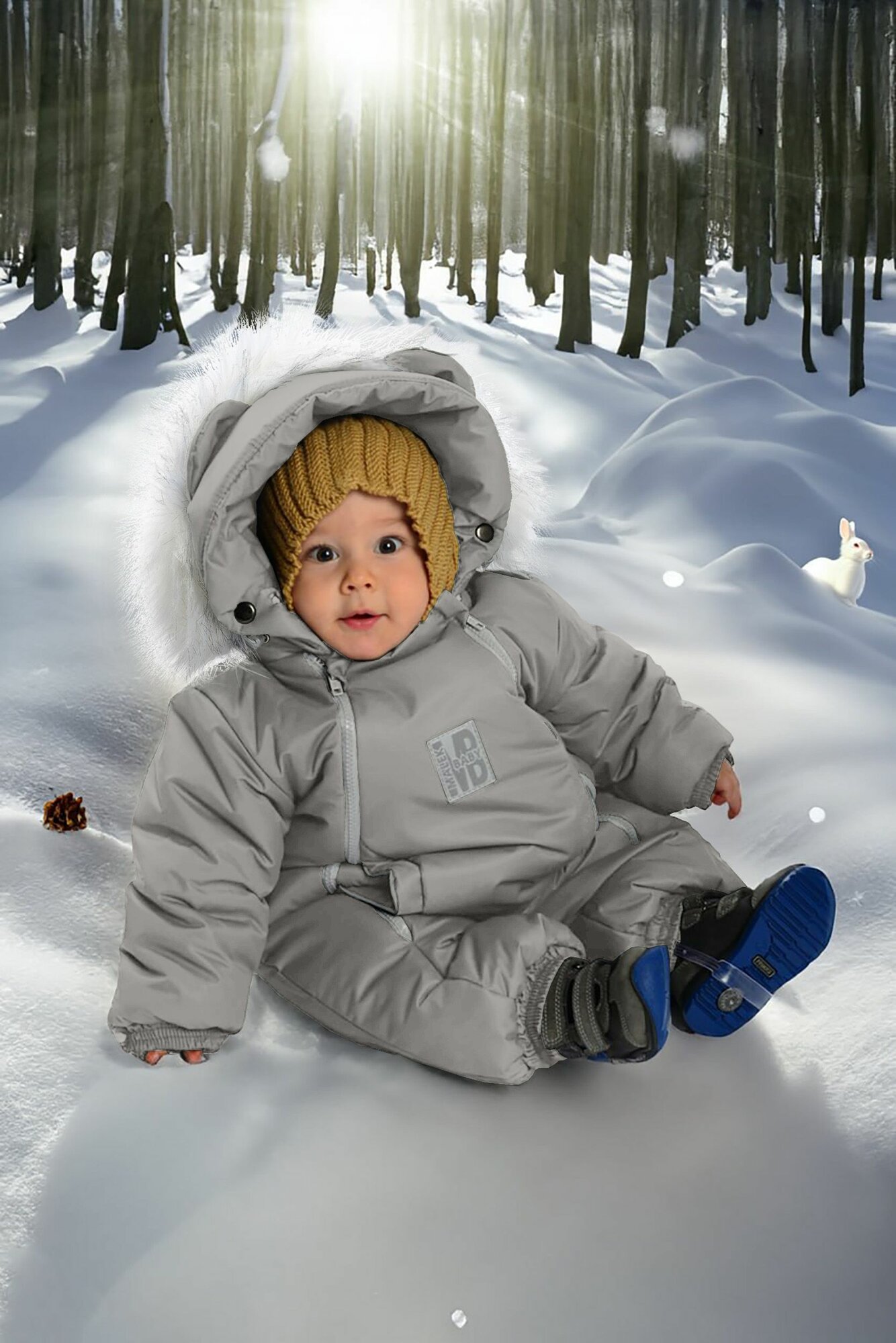 Комбинезон-трансформер детский зимний. Malek Baby. Львята + зеленые слонята, 263ш/2 (80 см)