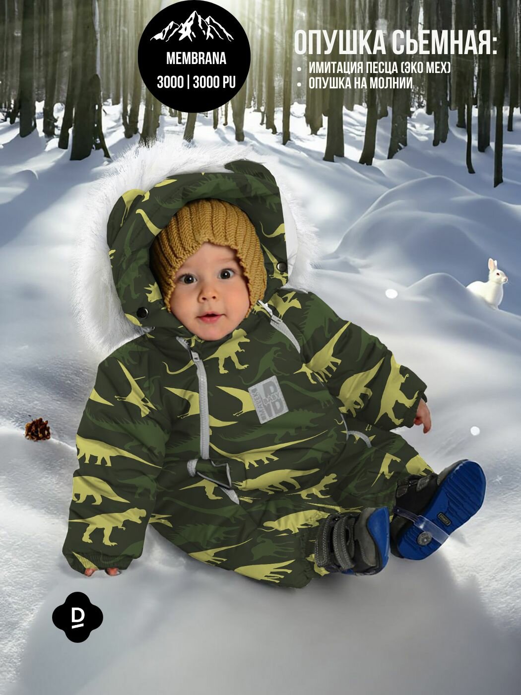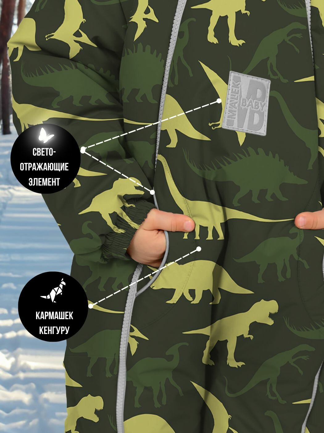 Комбинезон-трансформер детский зимний. Malek Baby. Львята + зеленые слонята, 263ш/2 (80 см)