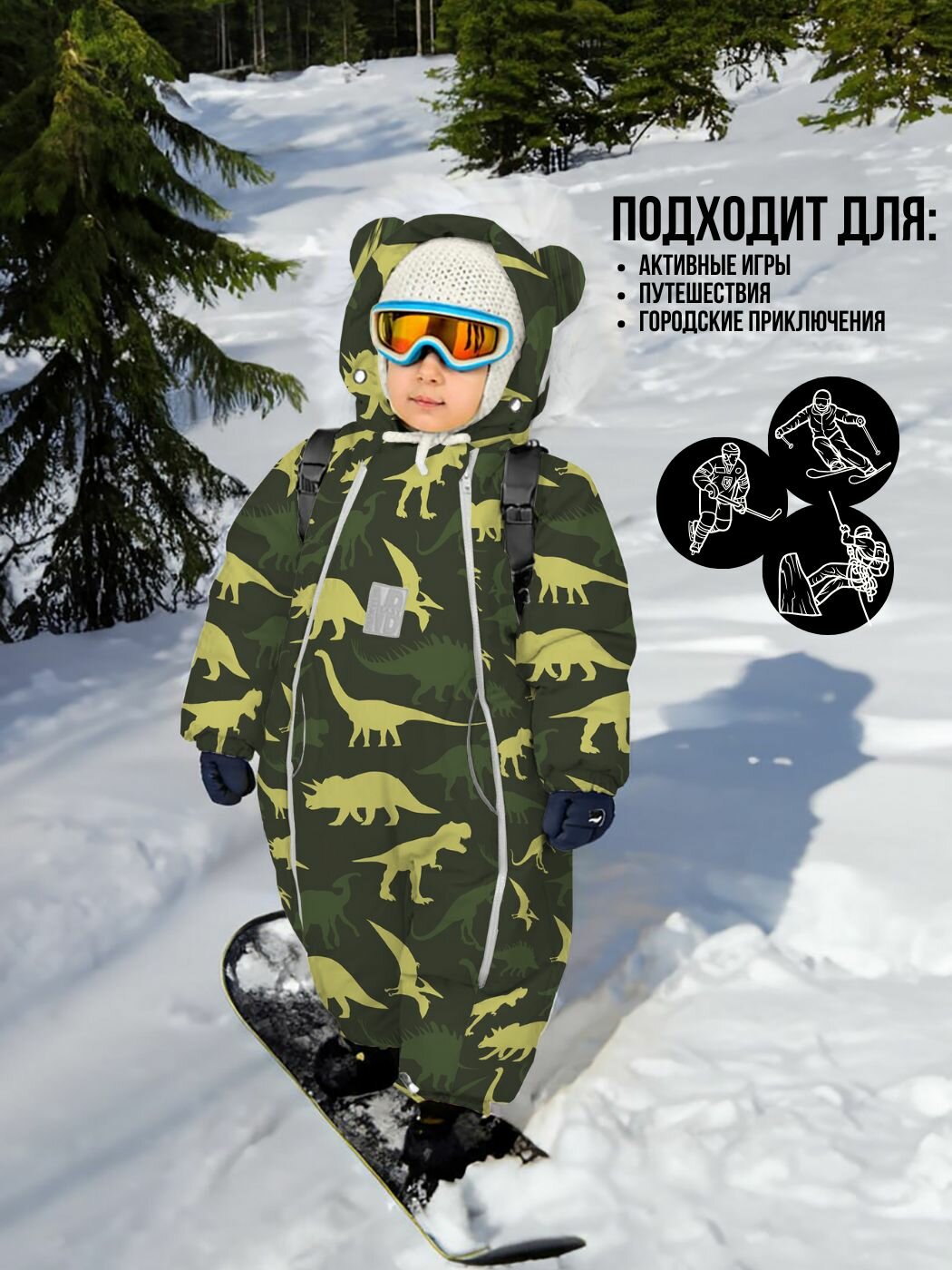 Комбинезон, №30 Динозавры камуфляж , растущий, 263шм/2 (104 см)