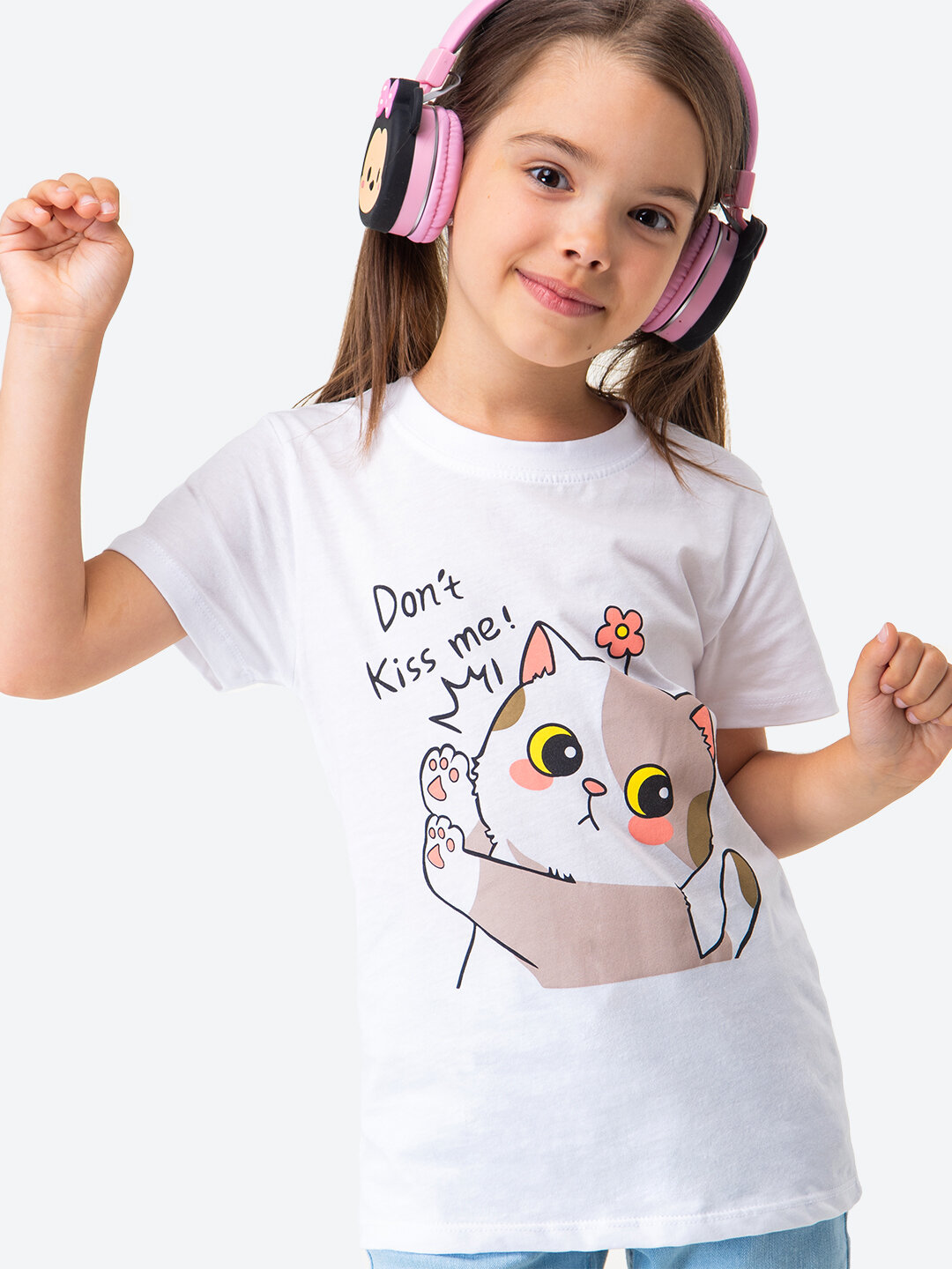 Детская футболка с принтом для девочки для мальчика хлопок HappyFox, HF00123 размер 104, цвет белый.котик