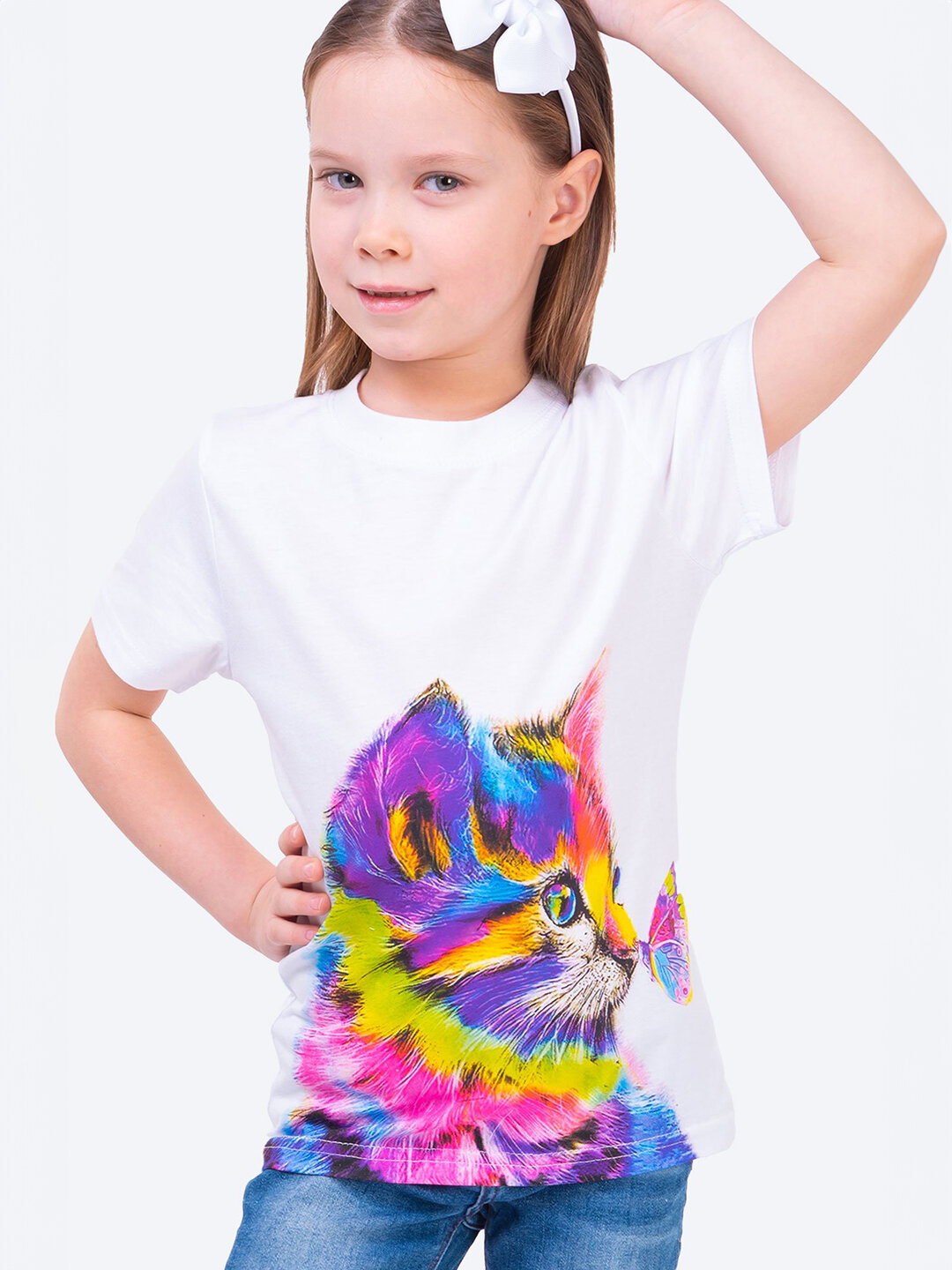 Детская футболка с принтом для девочки для мальчика хлопок HappyFox, HF00123 размер 110, цвет белый.котик