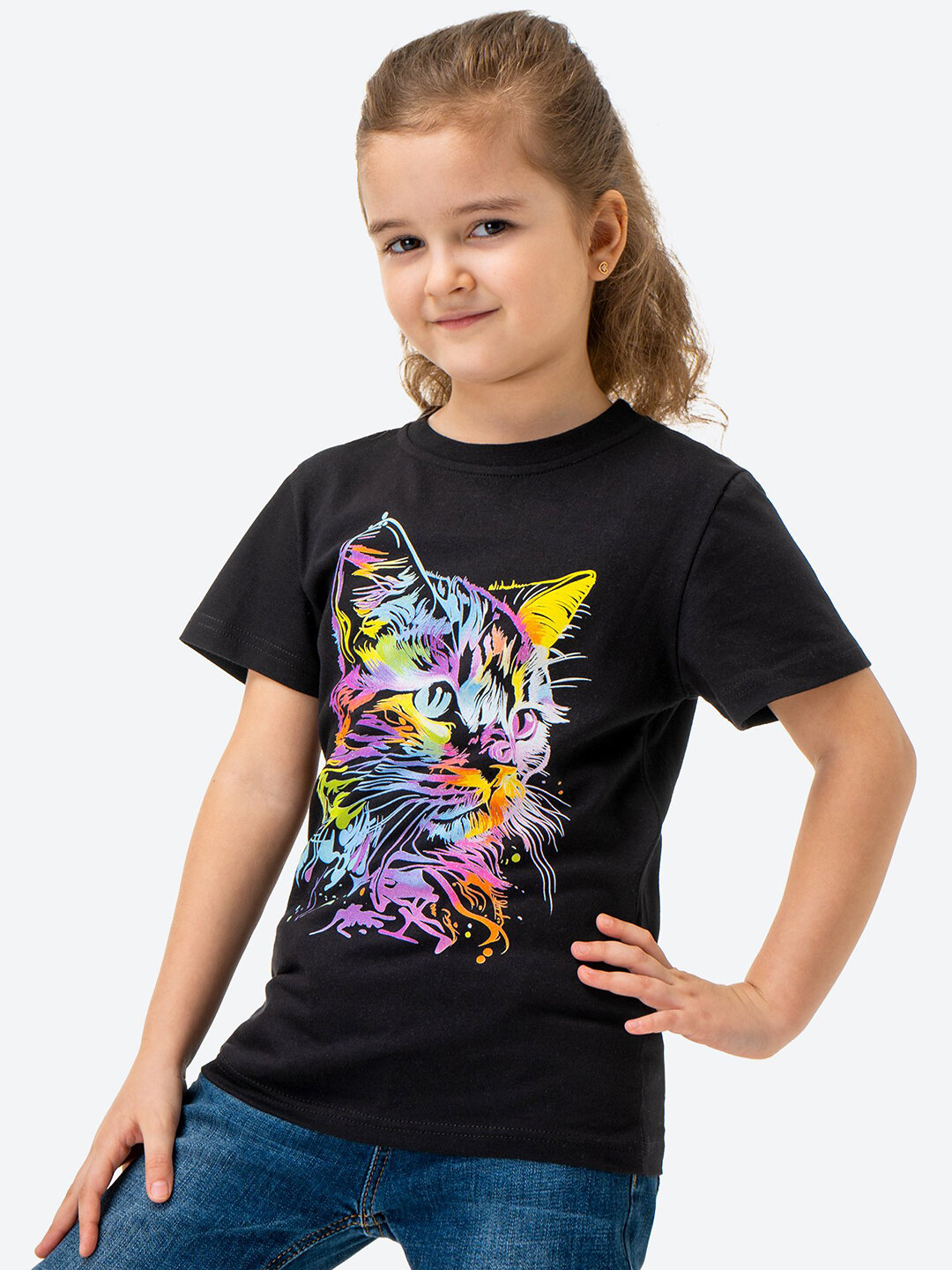 Детская футболка с принтом для девочки для мальчика хлопок HappyFox, HF00123 размер 104, цвет белый.котик